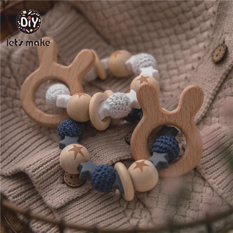 Деревянные бусины для вязания сделай сам Let's Make 16 мм 10 шт., деревянные жевательные, бусины для прорезывания зубов, ювелирные изделия, сенсорные Детская Игрушка прорезыватель для детской кроватки