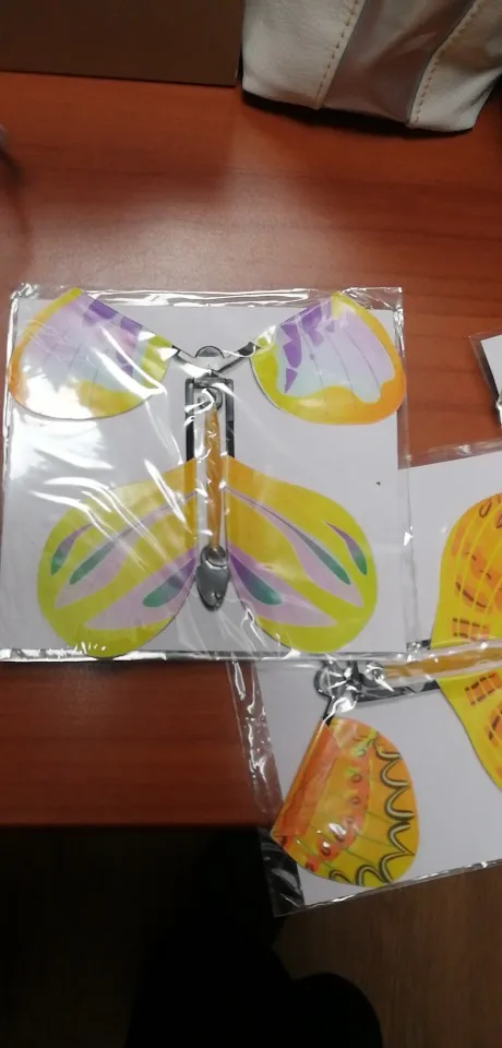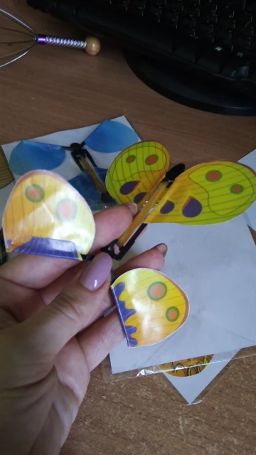 Заказала 18 мая в Новосибирск пришли 4 июня. Бабочек 5шт разных. Проверила одну – летает не очень хорошо так как мешают выпуклости на пластике (плохо обрезали) если детали подточить, то всё будет гладко и бабочка пролетает чуть дольше. Крылышки сделаны из тоненькой пластиковой бумаги внутри плотная резинка. Сзади каждой бабочки на упаковке есть инструкция по эксплуатации – это хорошо. Радует что они успели прийти до дня рождения и мне удастся воплотить задуманный сюрприз❤