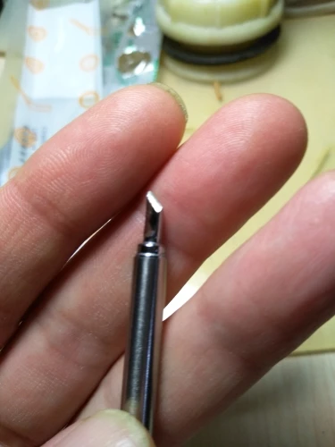 Обычное недорогое жало. Требует прогрева, чтобы нормально откалибровать. Из минусов - почему-то ручка прогревается сильнее, чем с другими жалами, это видно и по датчику температуры в ручке.