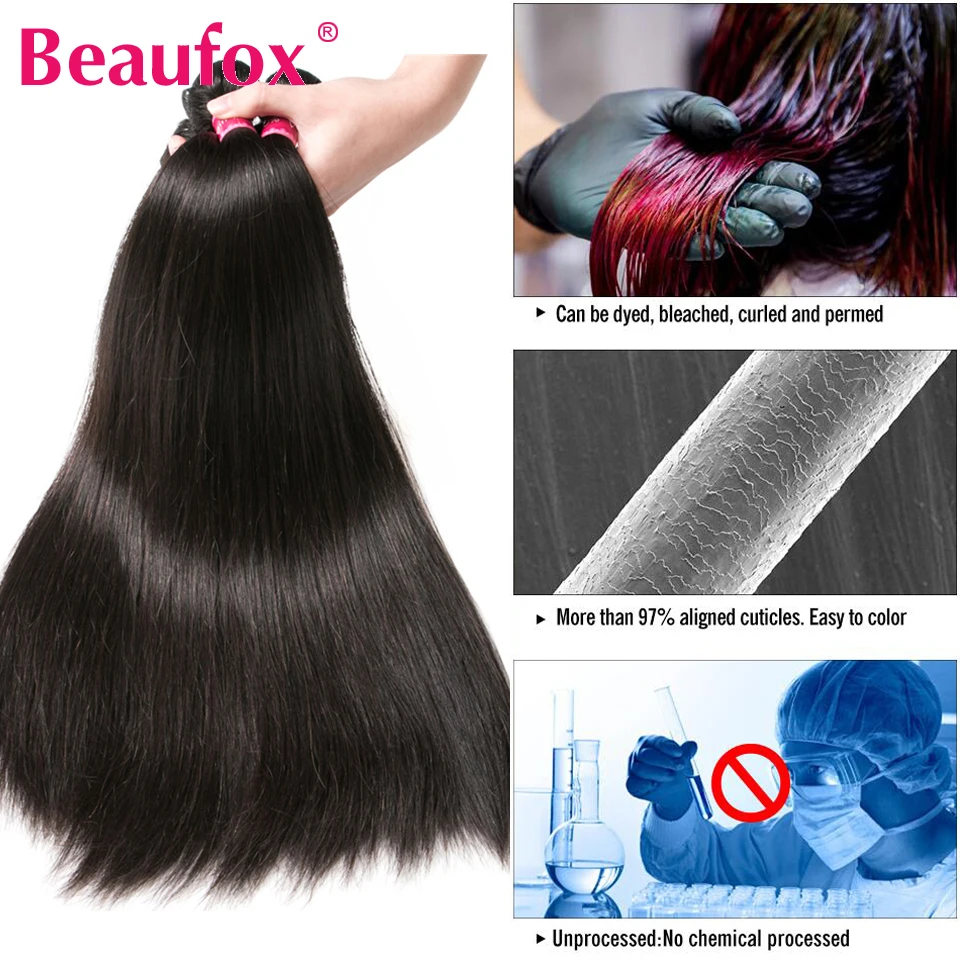 Прямые волосы Beaufox, пучки с застежкой, бразильские волосы, пупря...