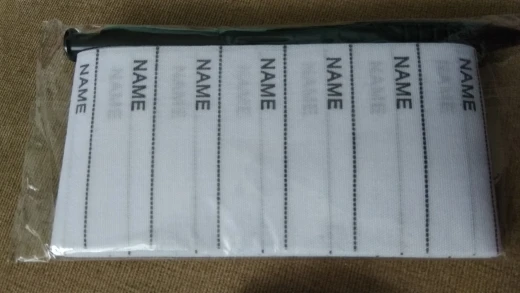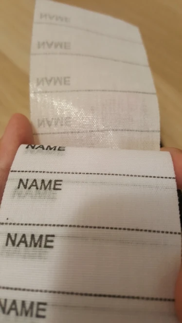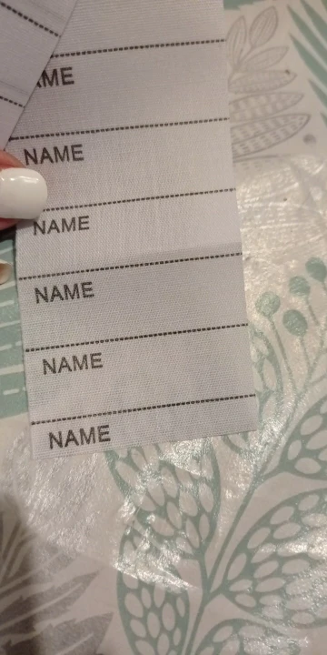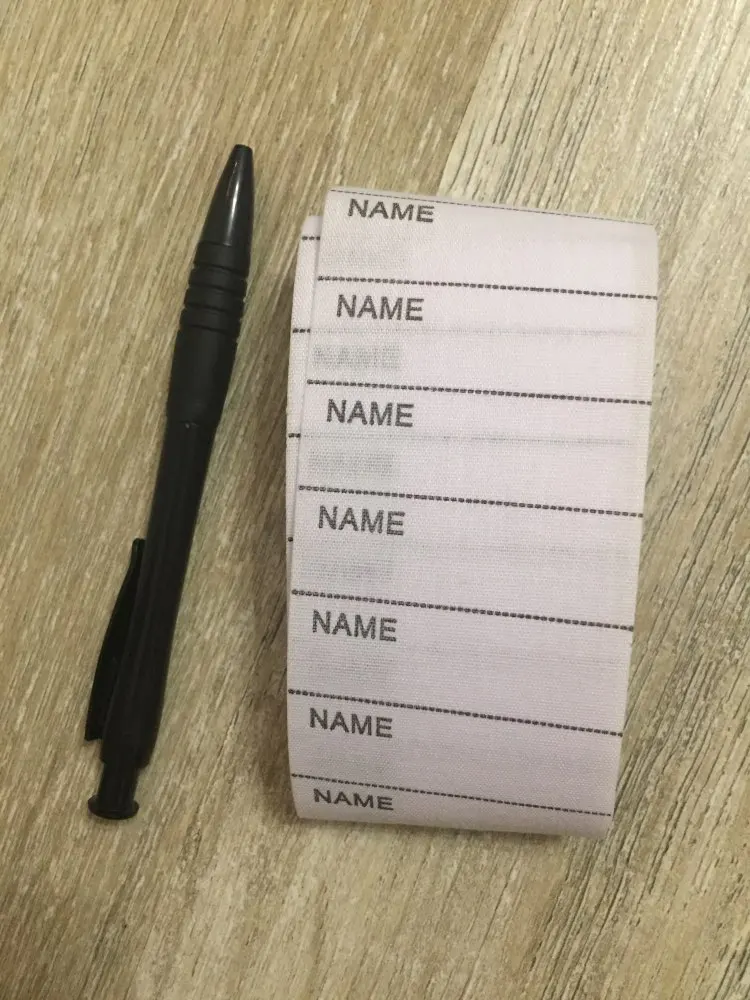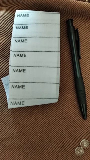 Длинная, бирок много. Влезло имя крупными буквами, школа, класс. Но решила не клеить, а пришивать