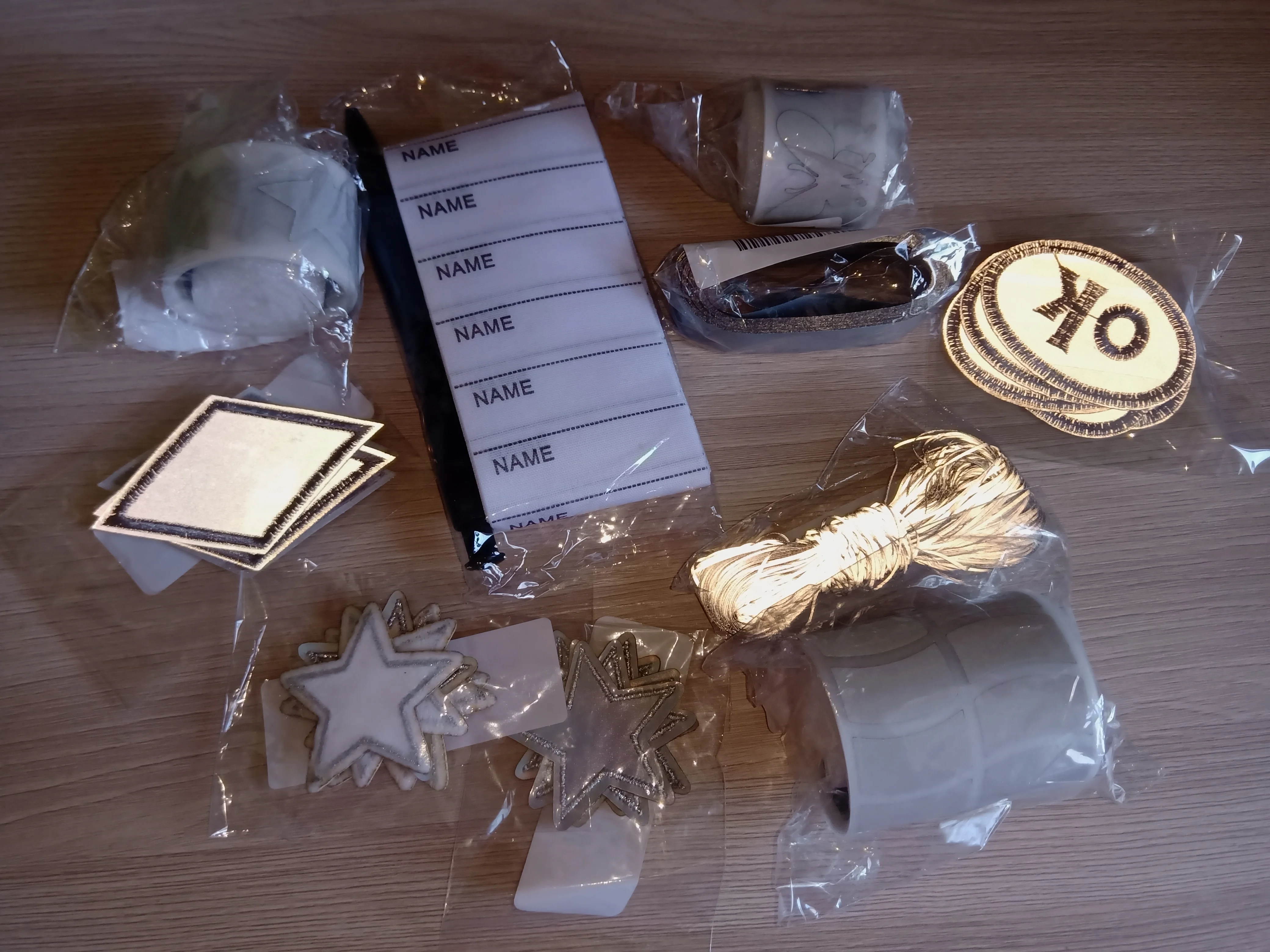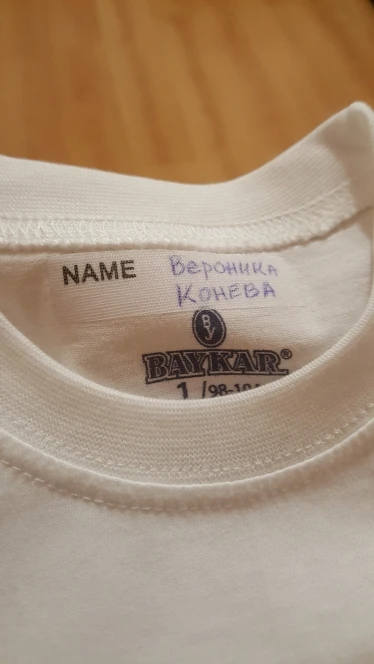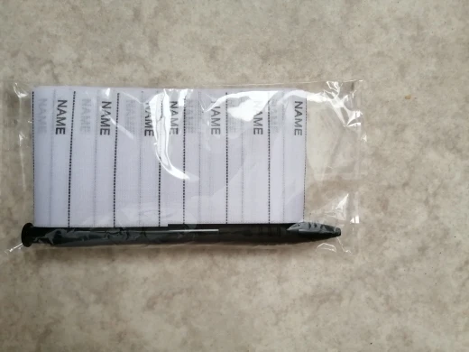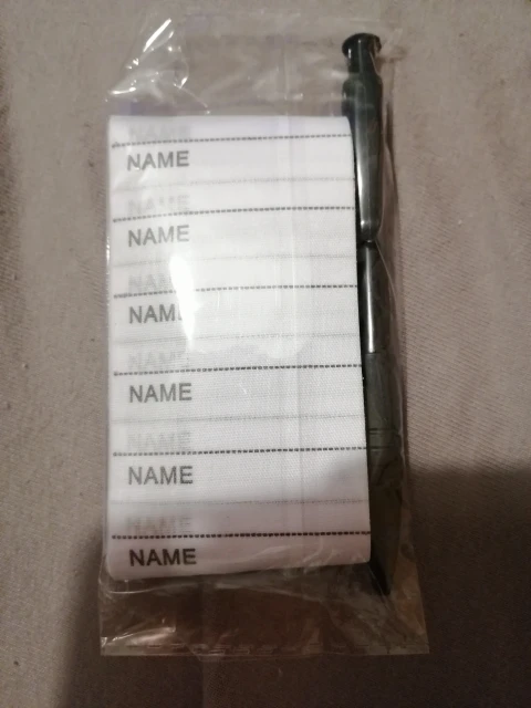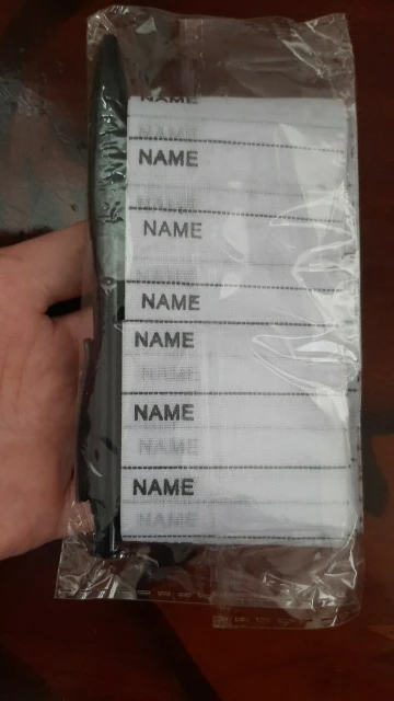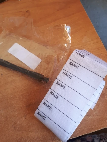 Наклейки жесткие, т. Е. на ворот клеить не вариант. Ручка самая обычная в комплекте. Пишет не очень хорошо, я ожидала что-то типа маркера. В целом, функции свои выполняет, утюгом клеится, оторвать можно легко. Посмотрим сколько стирок переживет. До спб около месяца, в ящик.