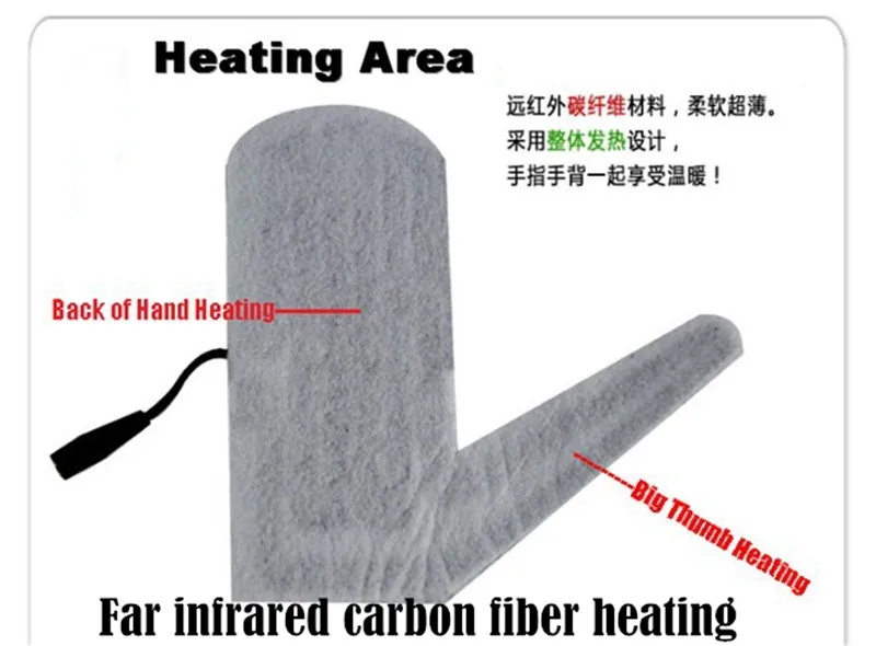 6 перчаточный материал изготовлен из водонепроницаемой ткани, есть три слоя изоляционного хлопка, нагревательный материал предназначен для использования нового карбонизированного волокна, может высвобождать Дальний инфракрасный луч для человеческого тела, он обладает уникальной гибкостью, быстрым нагревом, теплым и стойким.