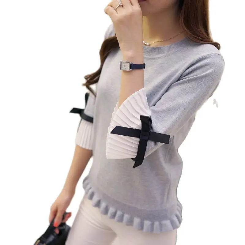 Женский Шикарный свитер, пальто, рубашка с рукавами-рогами, новинка 2022, агарические комплекты, шифоновый милый свитер для девочек
