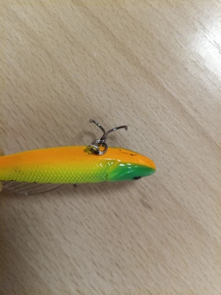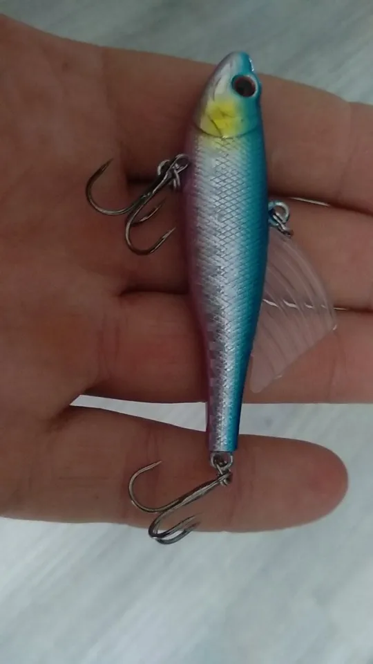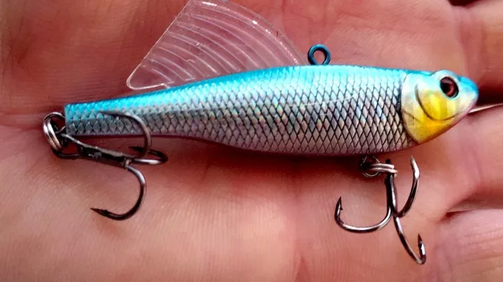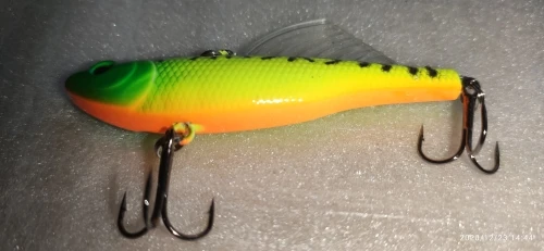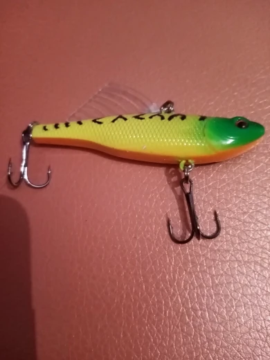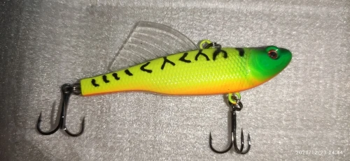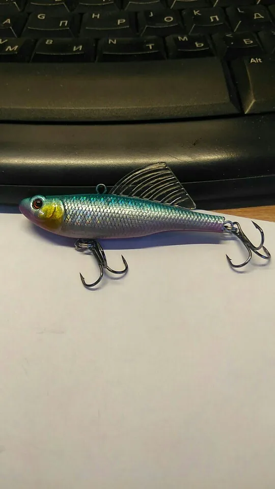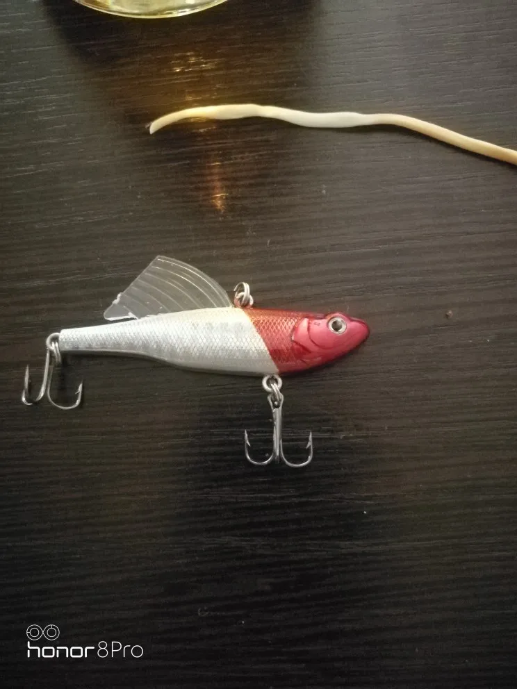 интересная модель, хорошо вибрирует. этот цвет не разловил, на другой поклевки были, но задний тройник цепляется за край лунки и сход.