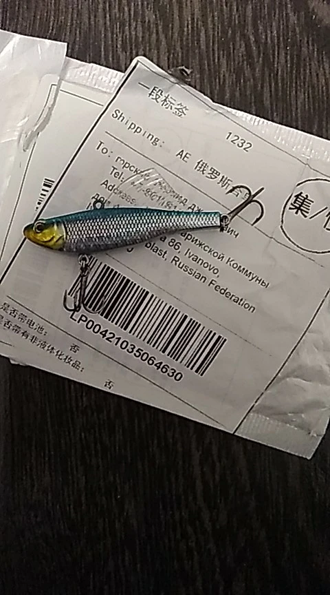 пришел ратлинчик очень быстро...к выходным буду тестить его на рыбалке...доставка для меня оказалось интересной и удобной ...доставили вместо всем привычной почты России в магазин пятёрочка рядом с домом..а на кассе продавцу всего лишь на всего нужно было сообщить трек номер который пришел в СМС и на почту ....что касается виба он больше в желтезну чем в зелень...попробую разловить судаком!!