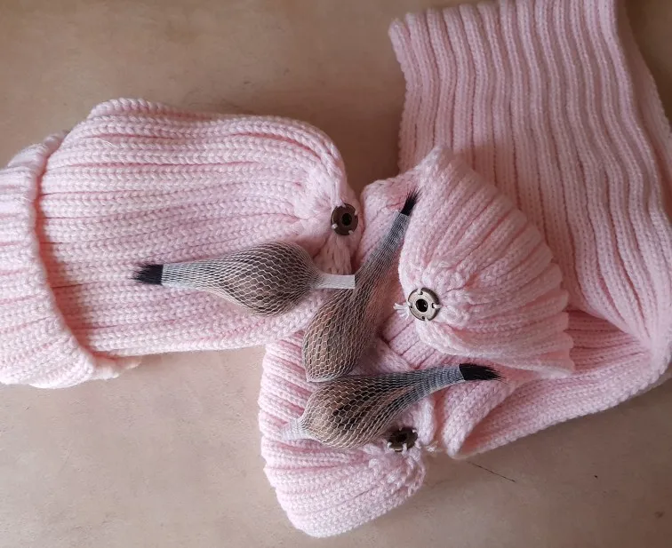 Комплект из шапки и шарфа для девочек, вязаные, с помпоном из натурального меха енота, зимние, 2018