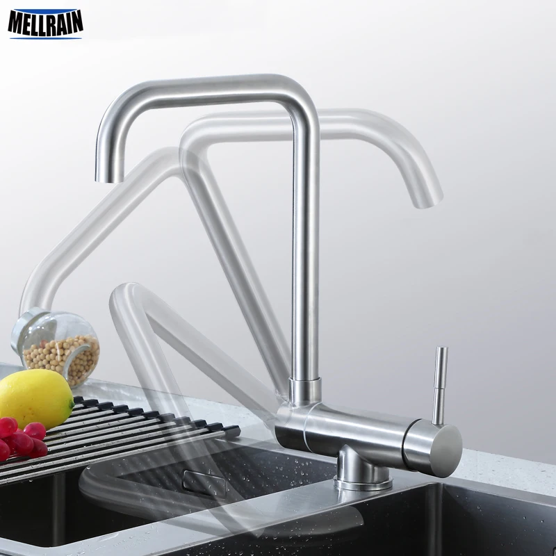 Скрытый свободный вращающийся смеситель для кухонной раковины, смеситель для воды с одним отверстием, крепление на палубу, нержавеющая сталь 304, матовая поверхность, качественный кран