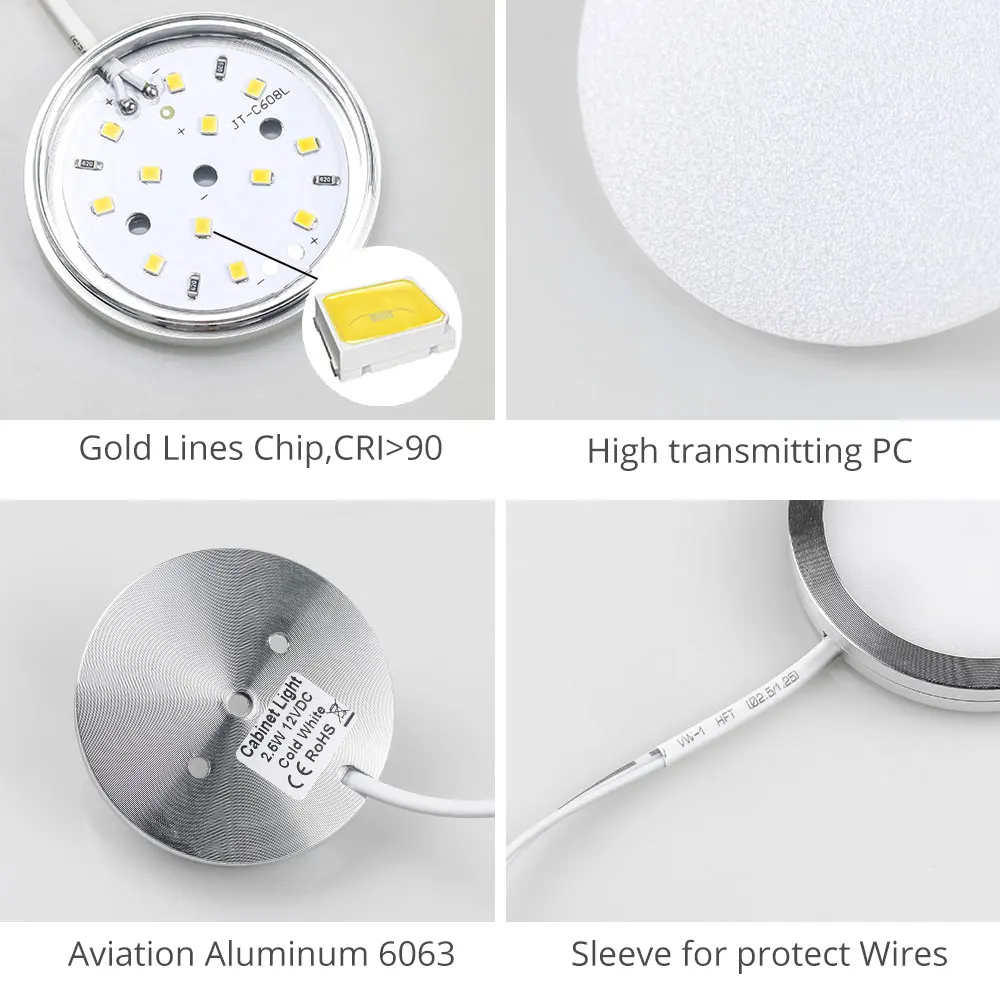 Под лампами кабинета LED шкафы кухня светильник Круглый 12V счетчик полка шкаф витрина гардероб Внутреннее освещение лампа светильники светодиодные светильники ночник подсветка светильник светодиодный светильник в шкаф