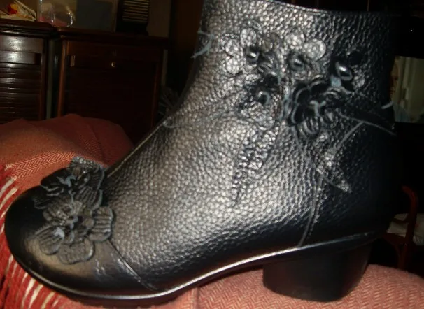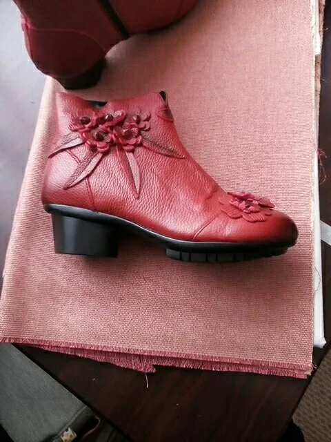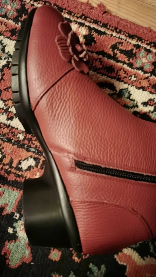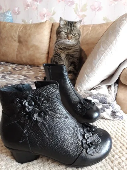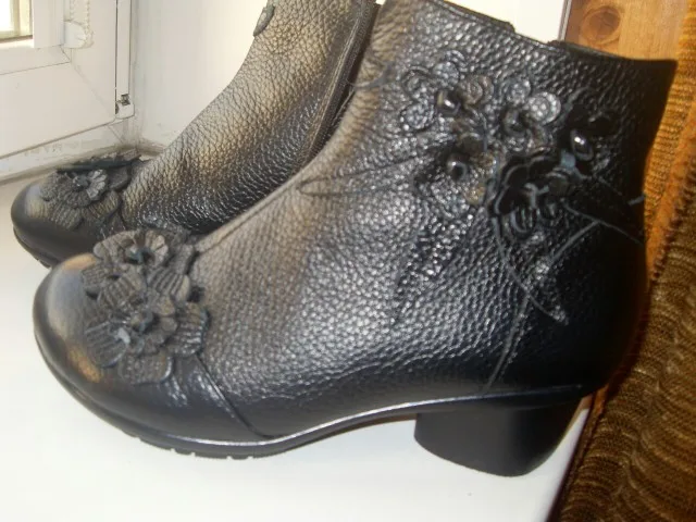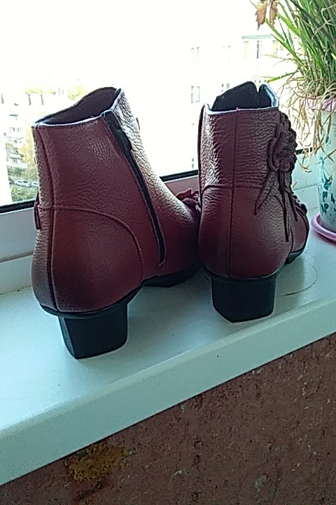 Боже мой, какие милые ботиночки!!! Люблю с первого взгляда! Ботинки доставлены курьером в очень короткий срок. Смотрятся малюсенькими, но на мой 37 российский брала 8,5, и они как раз на тёплый носочек. Сделаны аккуратно, из кожи, они даже пахнут кожей! Они короткие, до щиколотки, подошва очень оригинальная, литая резина, замочки работают легко. Внутри ботинок-тёплый войлок. В общем, ботинки на осень-весну и тёплую зиму. Продавец положил ещё подарочек-следочки. Я очень довольна товаром, рекомендую. Продавцу- огромное спасибо!!!