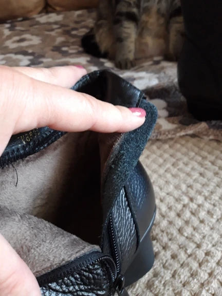 Всё отлично! Доставка быстрая в Москву, ботинки похоже кожа, качество хорошее, удобные, можно стельку вложить! Подошва интересная, надёжная! На мою стопу 24,5 см взяла 9 размер, отлично подошло! Молния работает чётко! Спасибо продавцу за подарок следки, хорошие! Продавец отвечал быстро на мои вопросы! Рекомендую сапоги и продавца! Всем спасибо!