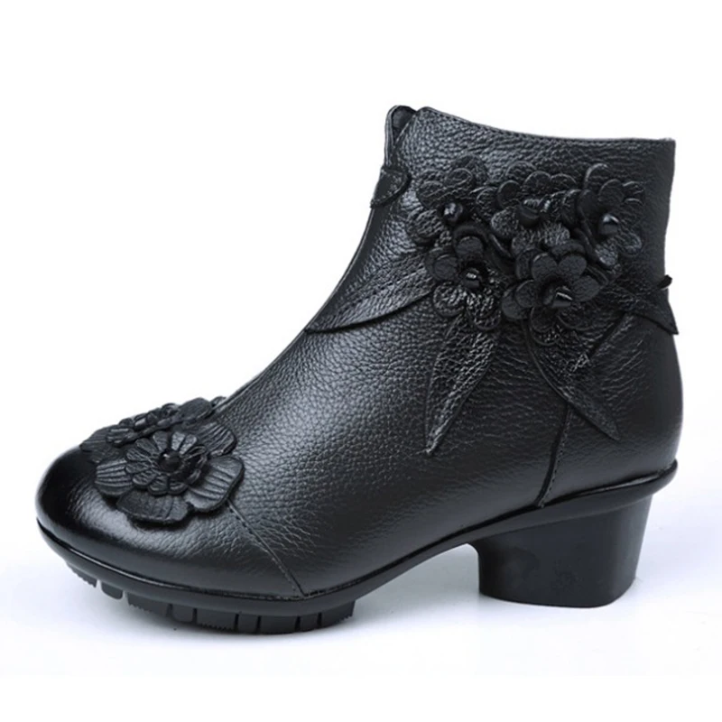Ботинки женские из натуральной кожи, зимние, винтажные, с мягкой нескользящей подошвой, 2020, размера плюс