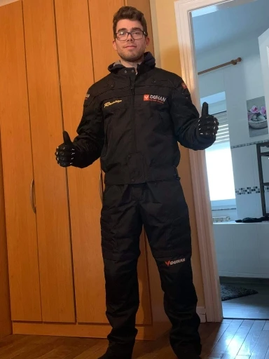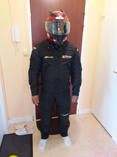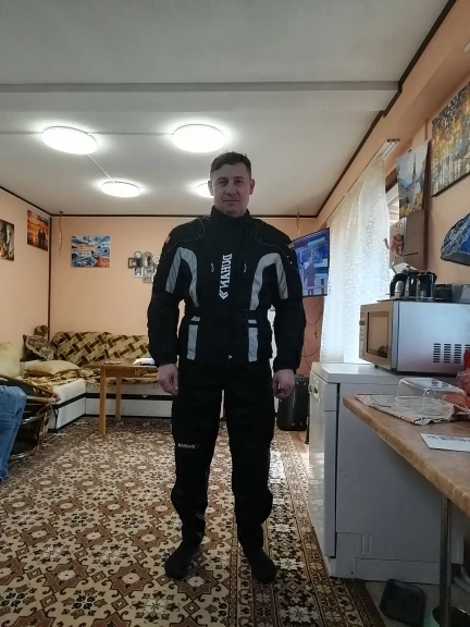 Пришло быстро, но почему то двумя посылками. Куртка и штаны по отдельности. Размер почти подошел. Мой рост 172, вес 82. Брал XL, получилось самую чуть великовато, но M был бы сильно мал. Но то, что чуть великоват даже хорошо - можно весной и осенью надевать под него водолазку или свитер. Качество хорошее. Как туристический экип самое то. не для гонок.