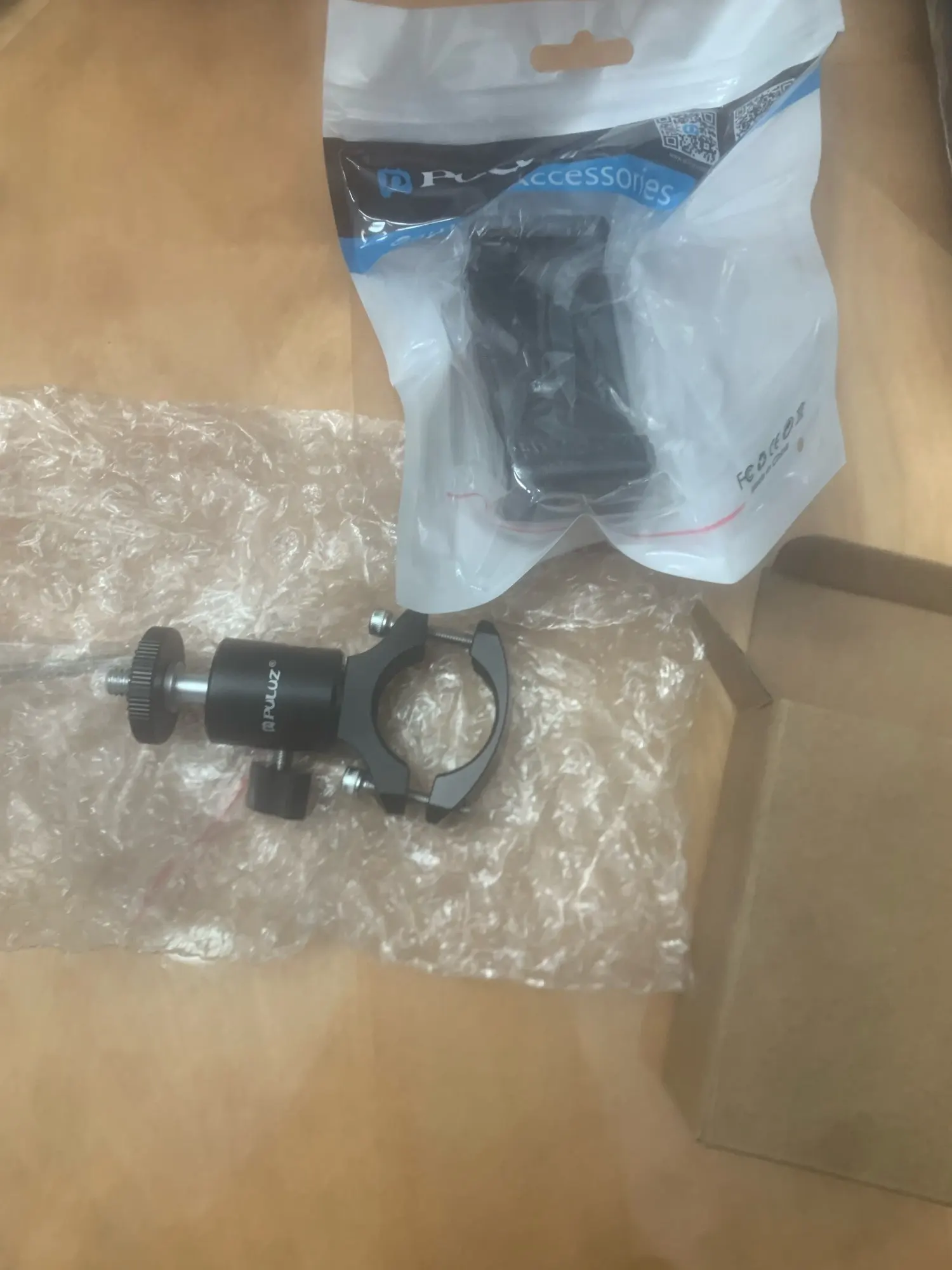 Очень быстрая доставка. Товары очень хорошо защищены во время транспортировки. Ручка очень прочная и хорошо сделанная. Его конструкция позволяет использовать любой угол позиционирования камеры. Проехав более ста км на различных поверхностях, камера не меняла свое положение даже на миллиметр. Я рекомендую продавцу.