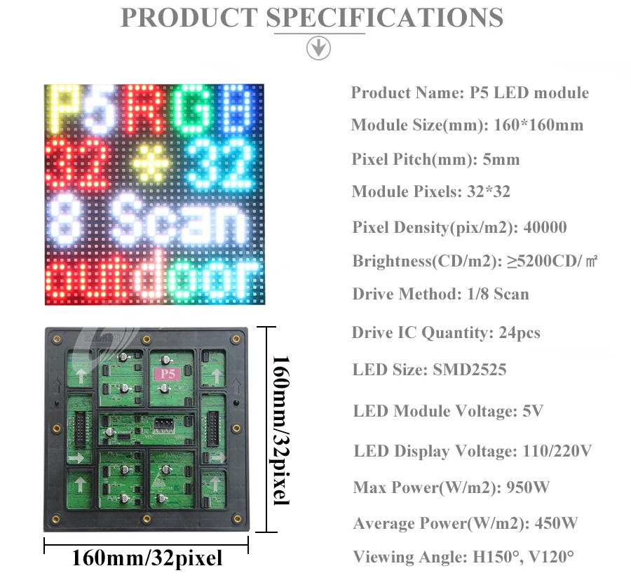 СВЕТОДИОДНЫЙ модуль панели экрана P5, 160*160 мм, 32*32 пикселей, 18 сканирования, 3 в 1, полноцветный СВЕТОДИОДНЫЙ модуль панели дисплея SMD2525 P5