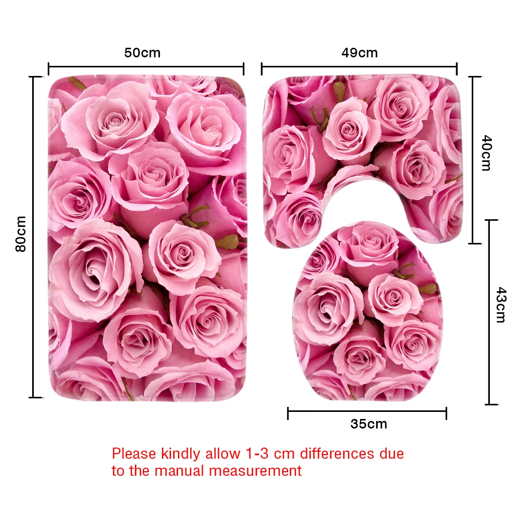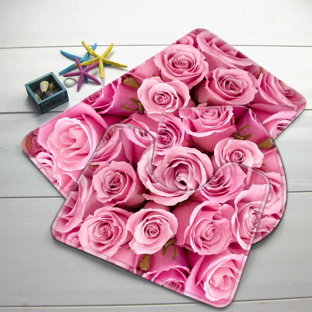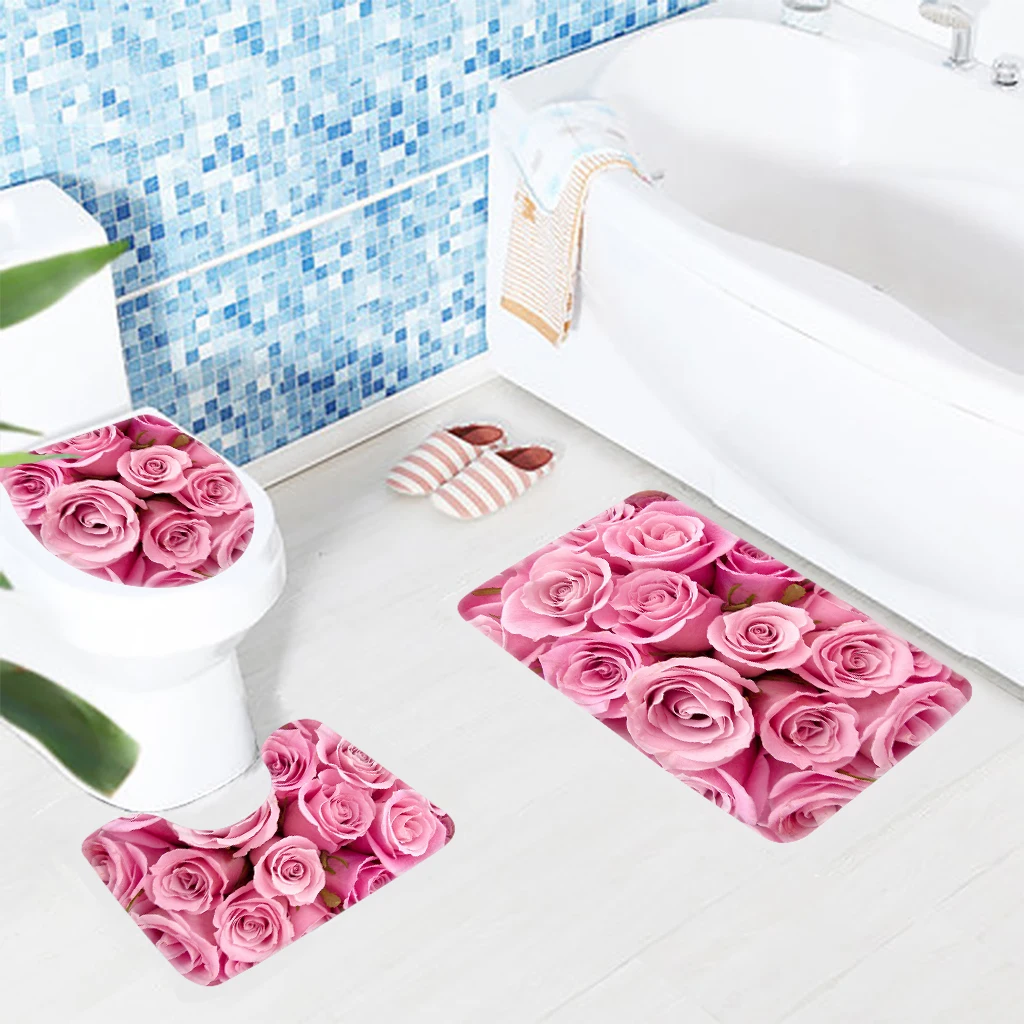 3 шт., набор ковриков для ванной с розовыми розами, нескользящий коврик для душа и туалетный коврик, Товары для ванной комнаты