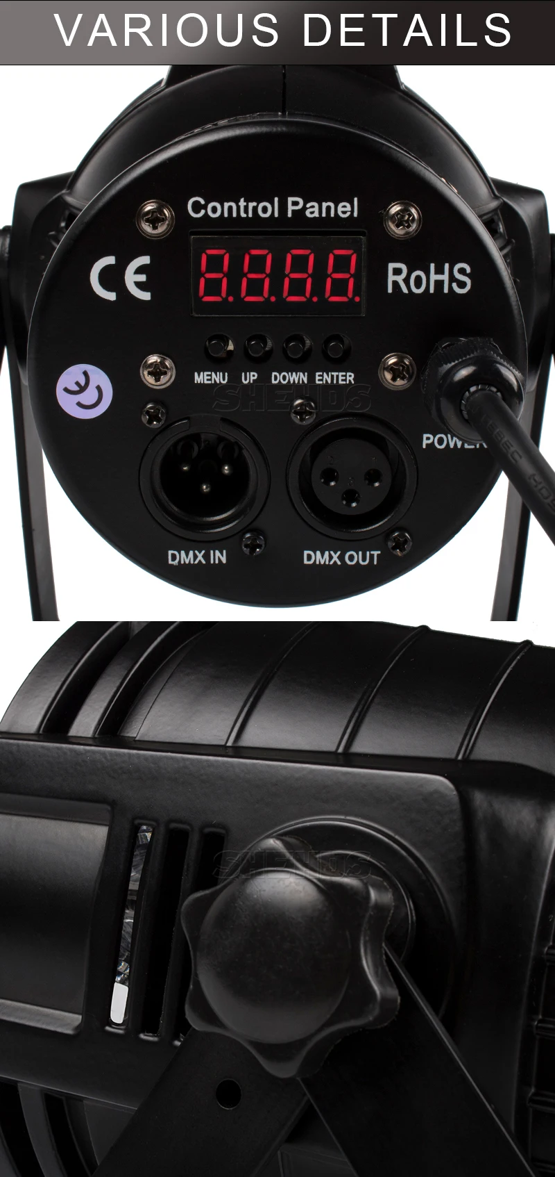 * Режимы работы: DMX512, автоматический запуск, звуковое действие, стробоскоп, автономный и мастер/раб, с богатым передовым встроенным