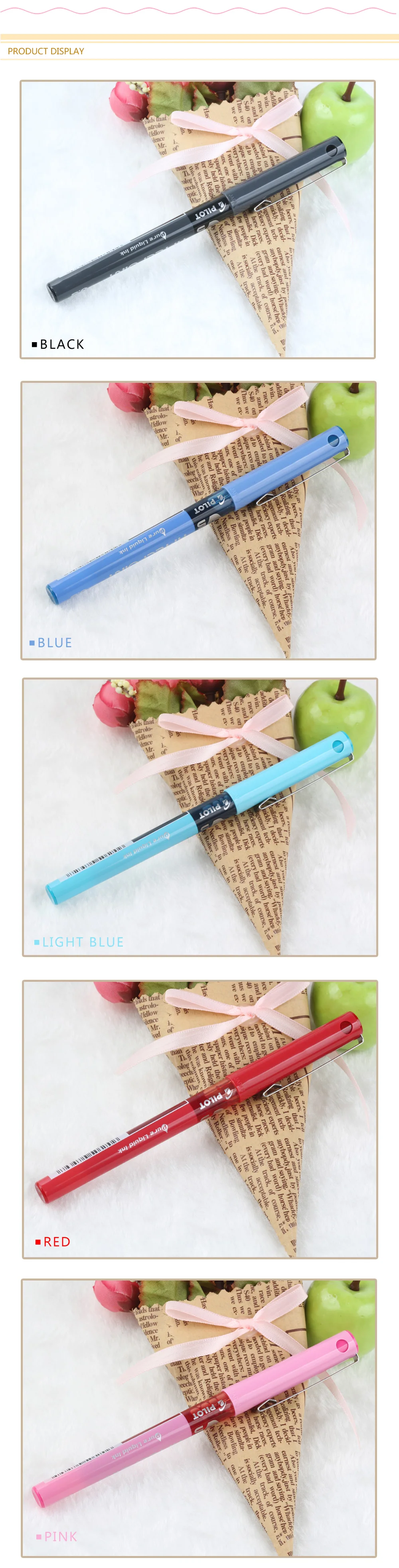 Цвет чернил V5 чистый, яркий светильник, водонепроницаемость, но из-за частичной воды на основе вязкости, поэтому бумага имеет определенные требования, когда вы пишете на сырой бумаге волокна, чернила могут разложить бумагу.