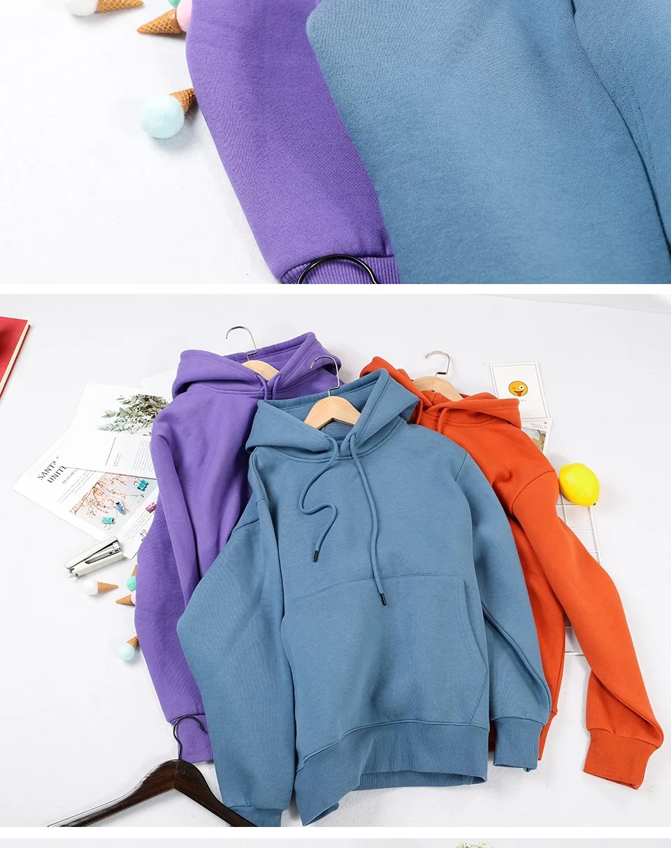 Женская флисовая толстовка с капюшоном, осенняя теплая толстовка в ...