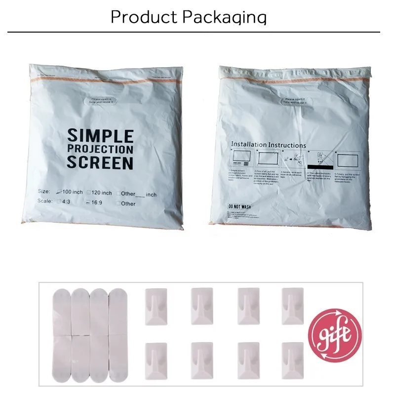 AUN 100 inch 16:9 Portable Projector Screen White cloth material Outdoor type support LED Projector Home theater
