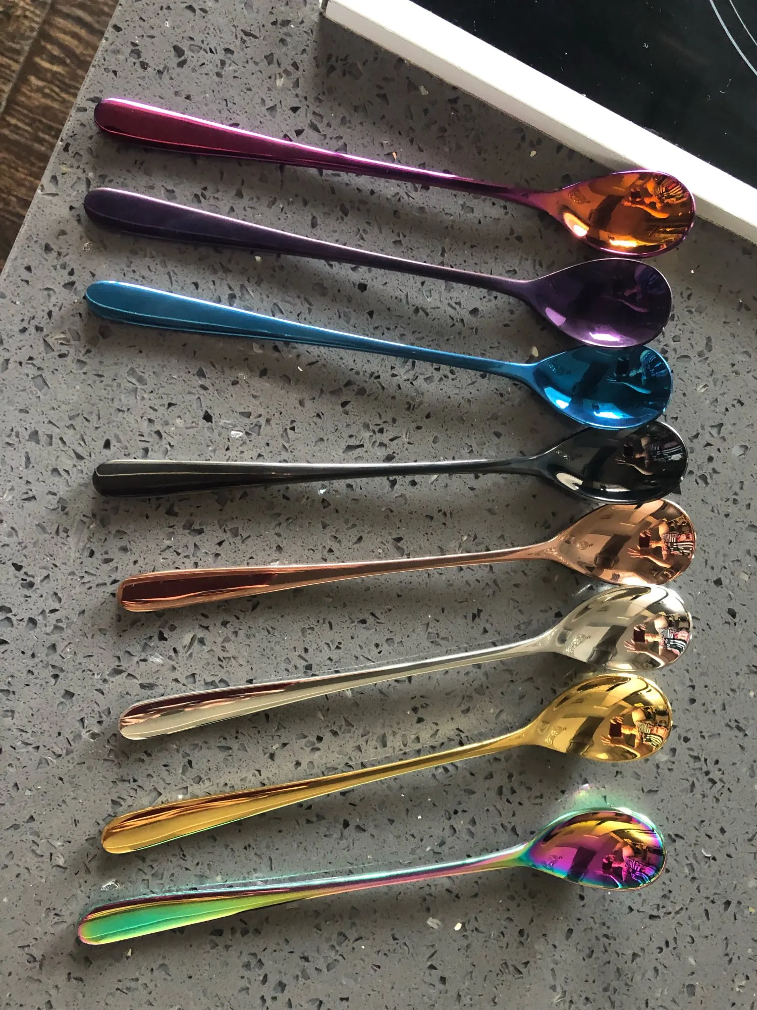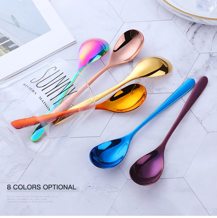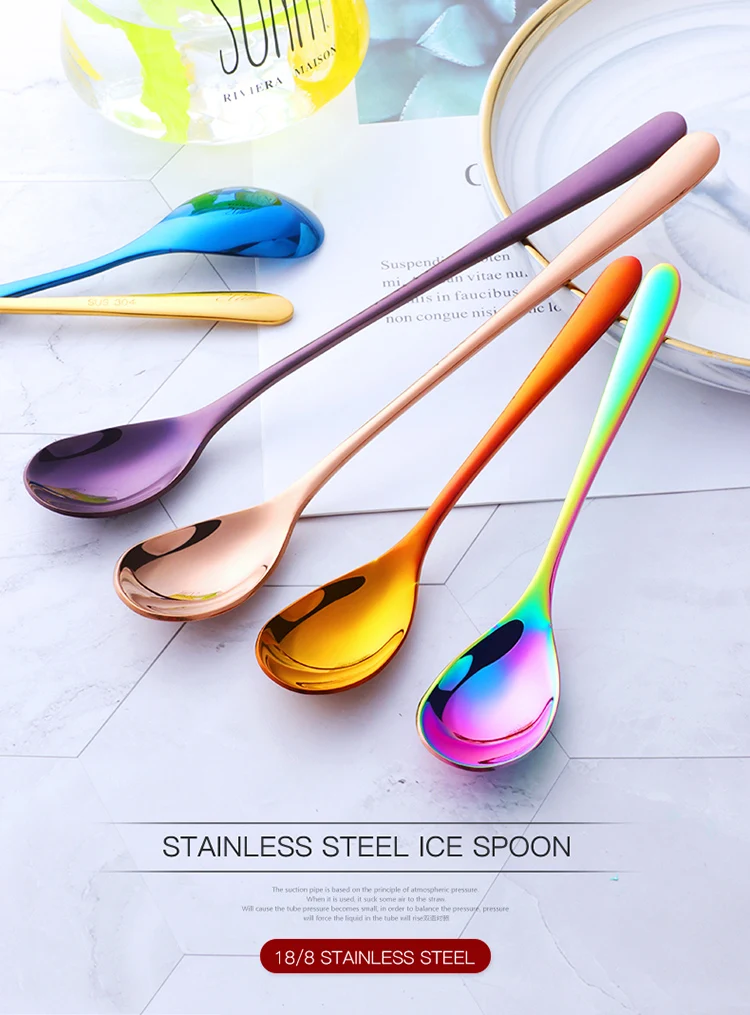 Ложка для льда, 8 цветов, из нержавеющей стали, с длинной ручкой, розовое золото комплект кофейных ложек, 7 цветов, длинная ложка для льда, черная ложка для смешивания цветов