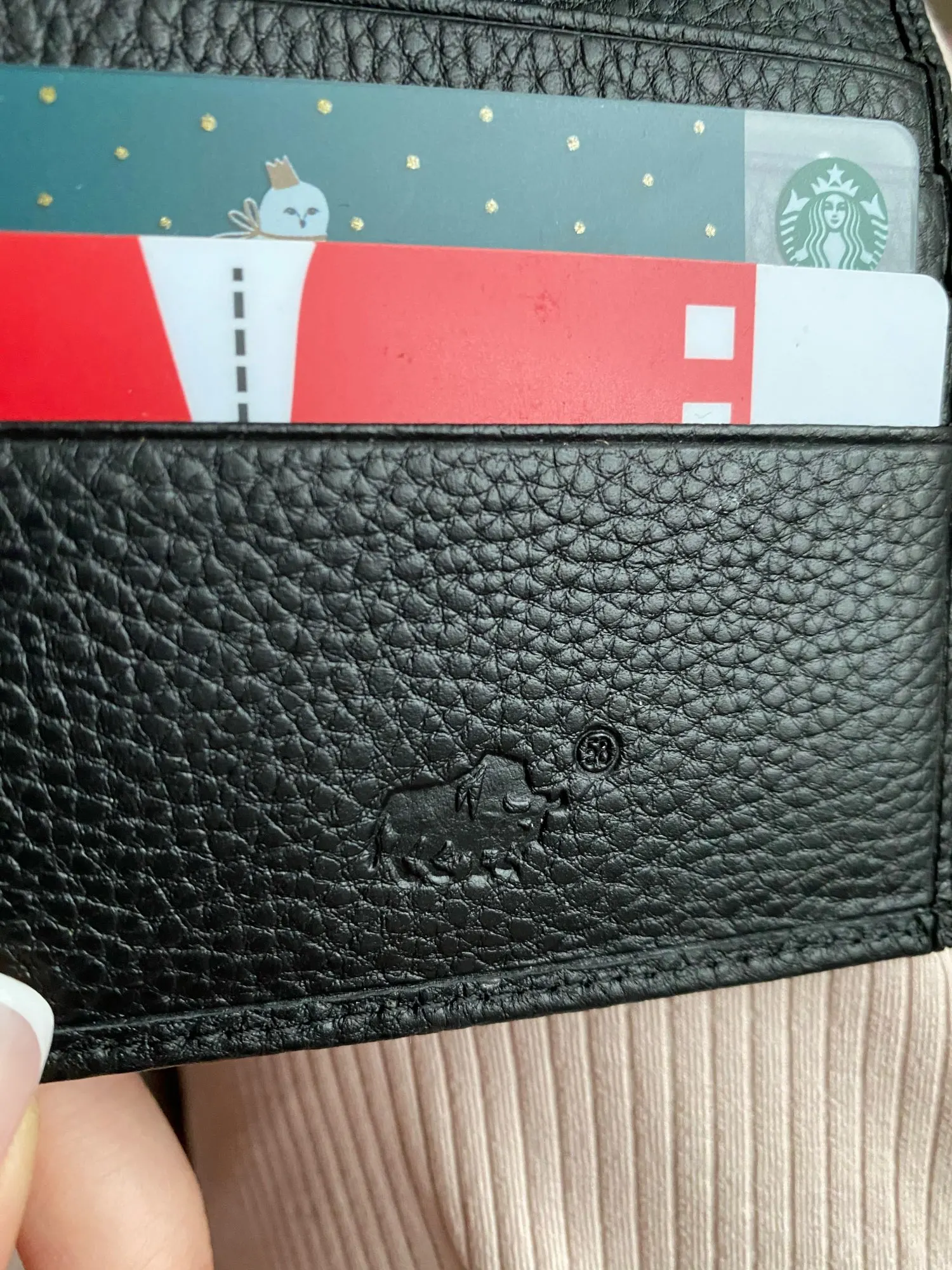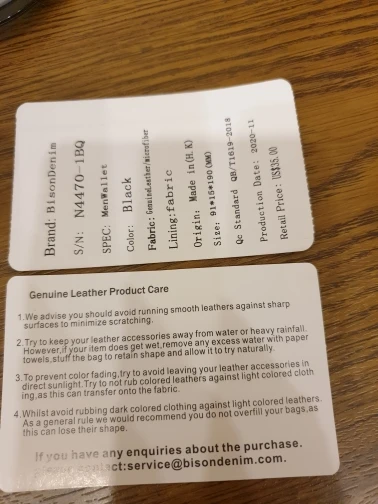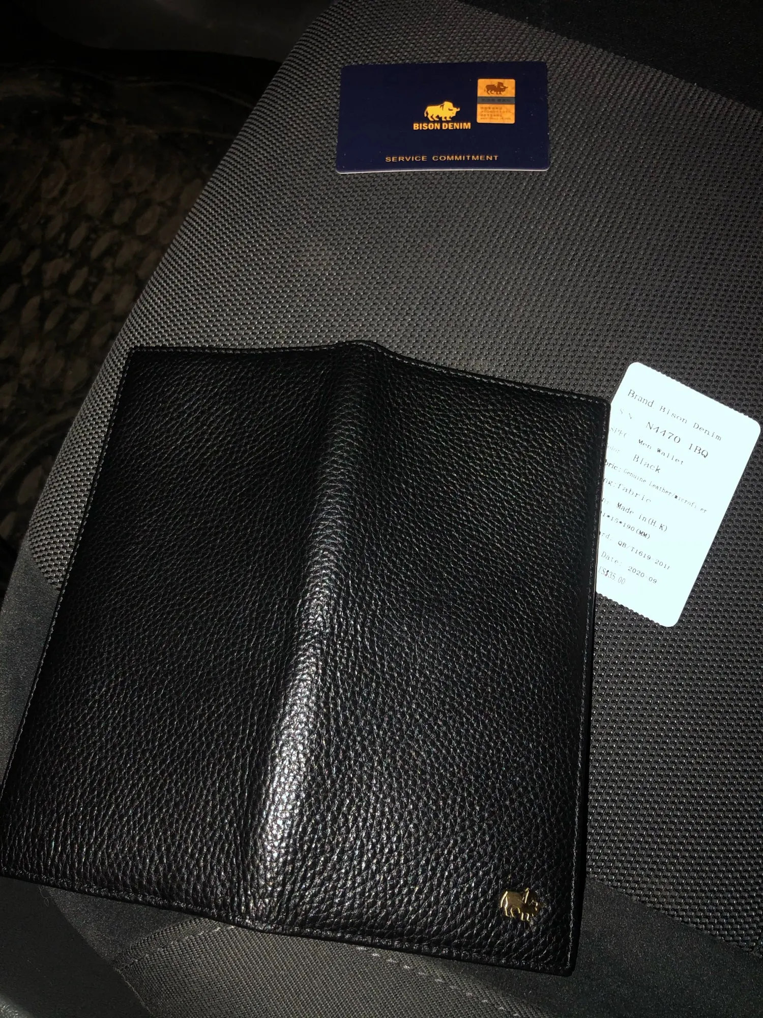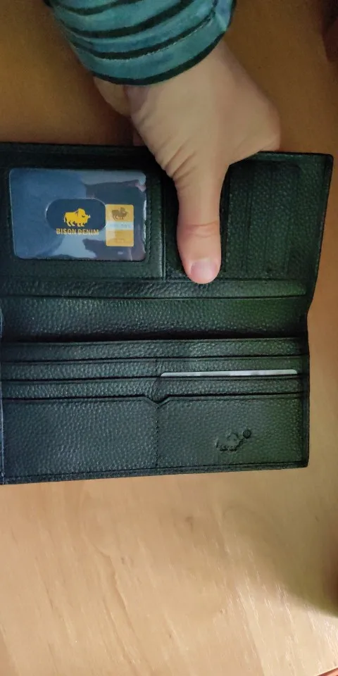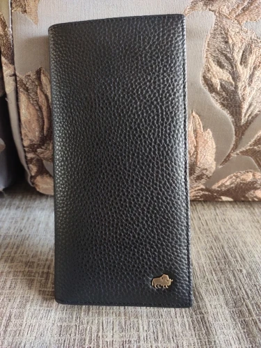 Очень быстрая доставка, ещё и до двери! Кошелёк прошит очень хорошо, нет лишних ниточек, очень аккуратно сделан. Есть немного запах, но думаю скоро выветрится. На внутренней поверхности есть четкий оттиск бизона). Надеюсь мужу понравится подарок.