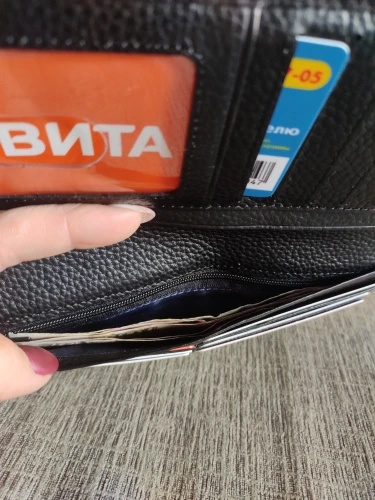 Товар пришел быстро. Заказывал по России. Отправили за 2 дня, пришел +4 итого 6 дней. Товар соответсвует описанию. Единственное что я думал он жесткий, оказалось не совсем. Ну это не страшно. В нем много отсеков для карт и 2 отсека для купюр. Нет замков и застежек. Но все карманы плотные, так что ничего не выпадет. Монеты положит не удастся так как для них не предусмотрено места