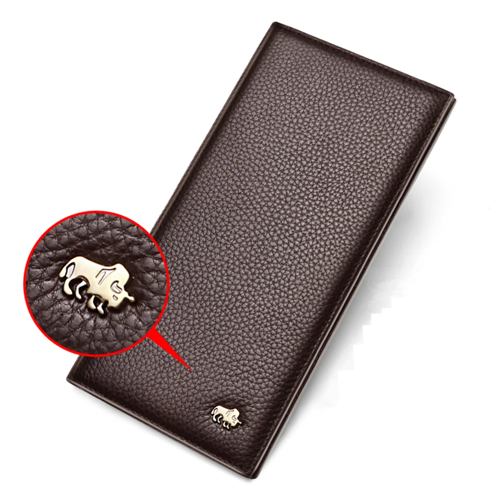 Мужской Длинный кошелек BISON DENIM, деловой Тонкий кошелек из натуральной кожи, N4470-1