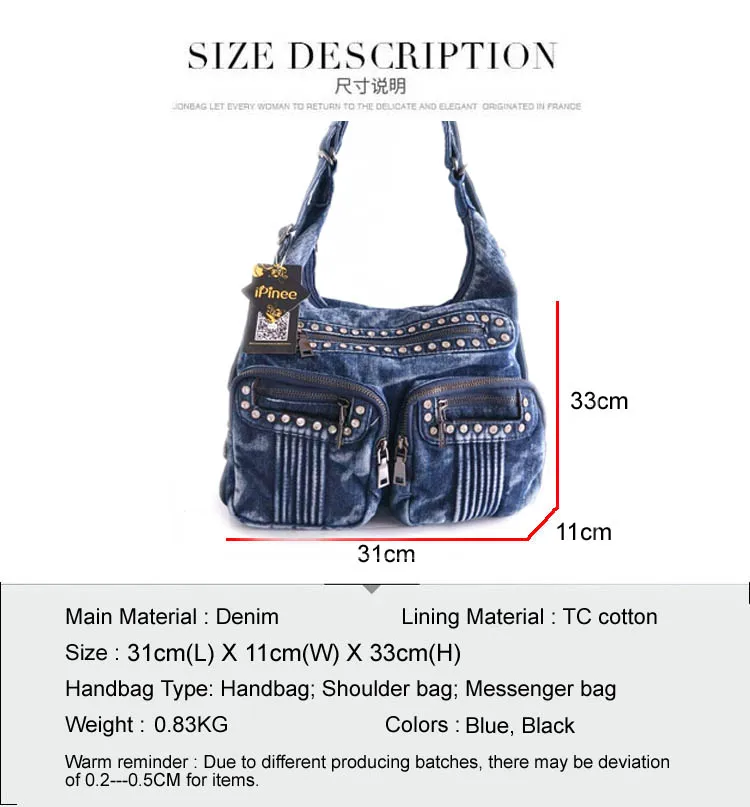 Сумки iPinee модная из джинсовой ткани, Джинсовка, женские Наплечные сумки с несколькими карманами, женские сумки со стразами