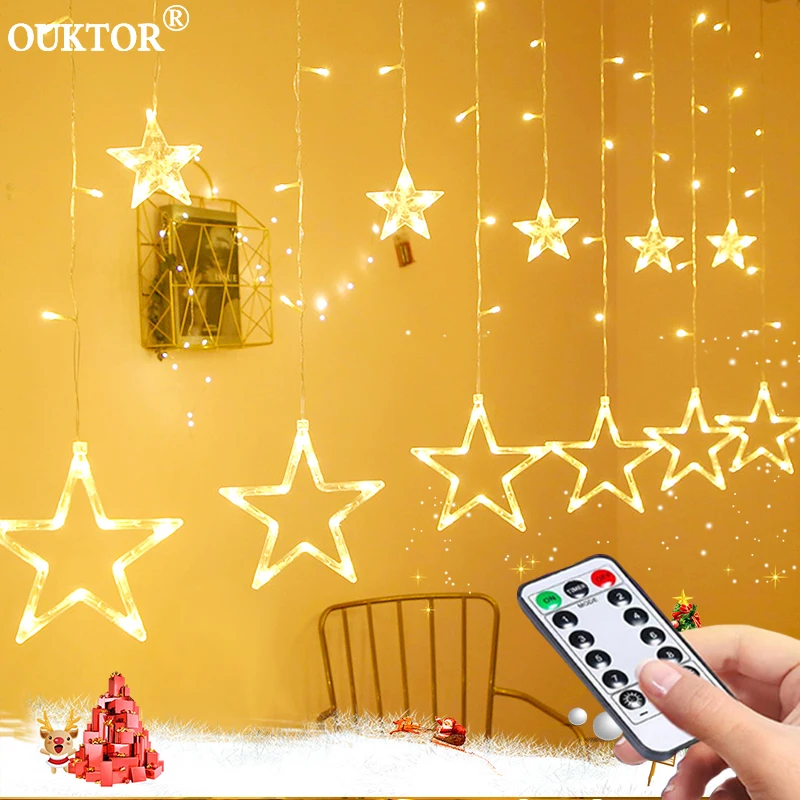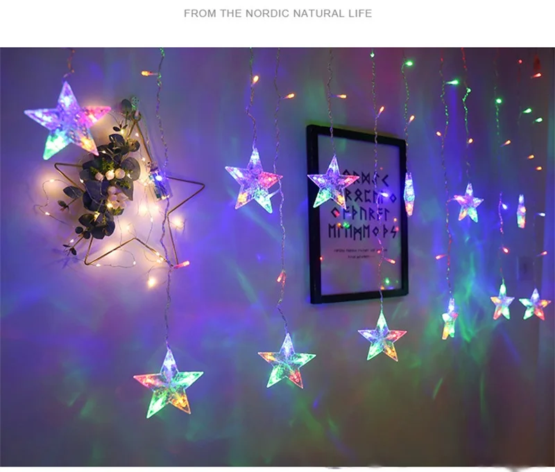 Рождественская гирлянда со звездами, 2,5 м, светодиодная гирлянсветильник-занавеска, украшение s, праздничное освещение, Сказочная гирлянда для свадебной вечеринки, новый год 220 В