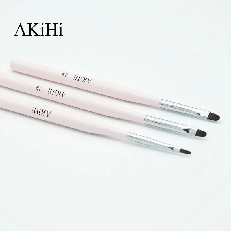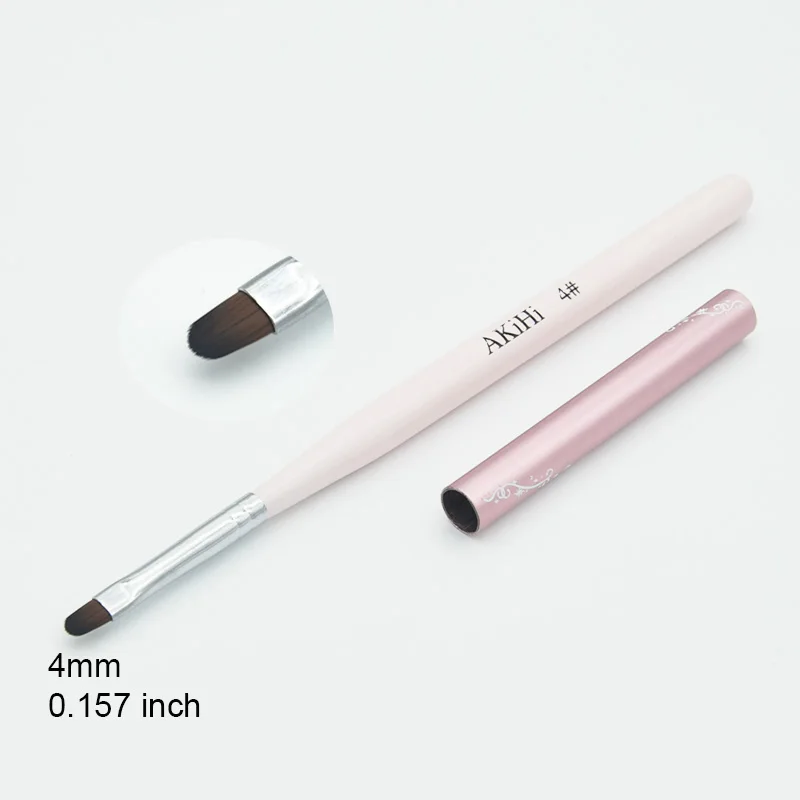 Кисть для дизайна ногтей AKiHi, кисть для рисования, УФ-гель, ручка для рисования ногтей, круглая головка, розовая ручка с металлическим колпачком