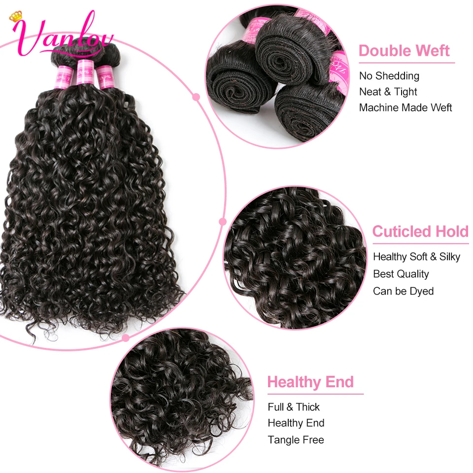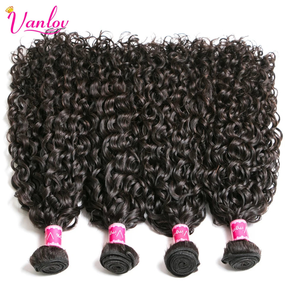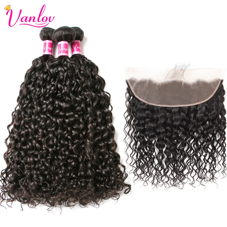 Ванлова человеческие волосы пряди с фронтальной 3 шт. бразильские волнистые волосы пряди с закрытием Волосы Remy Кружева Фронтальные с пряди