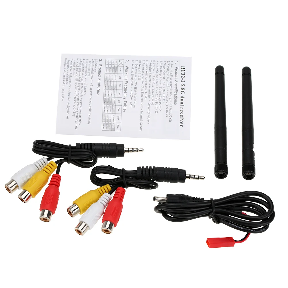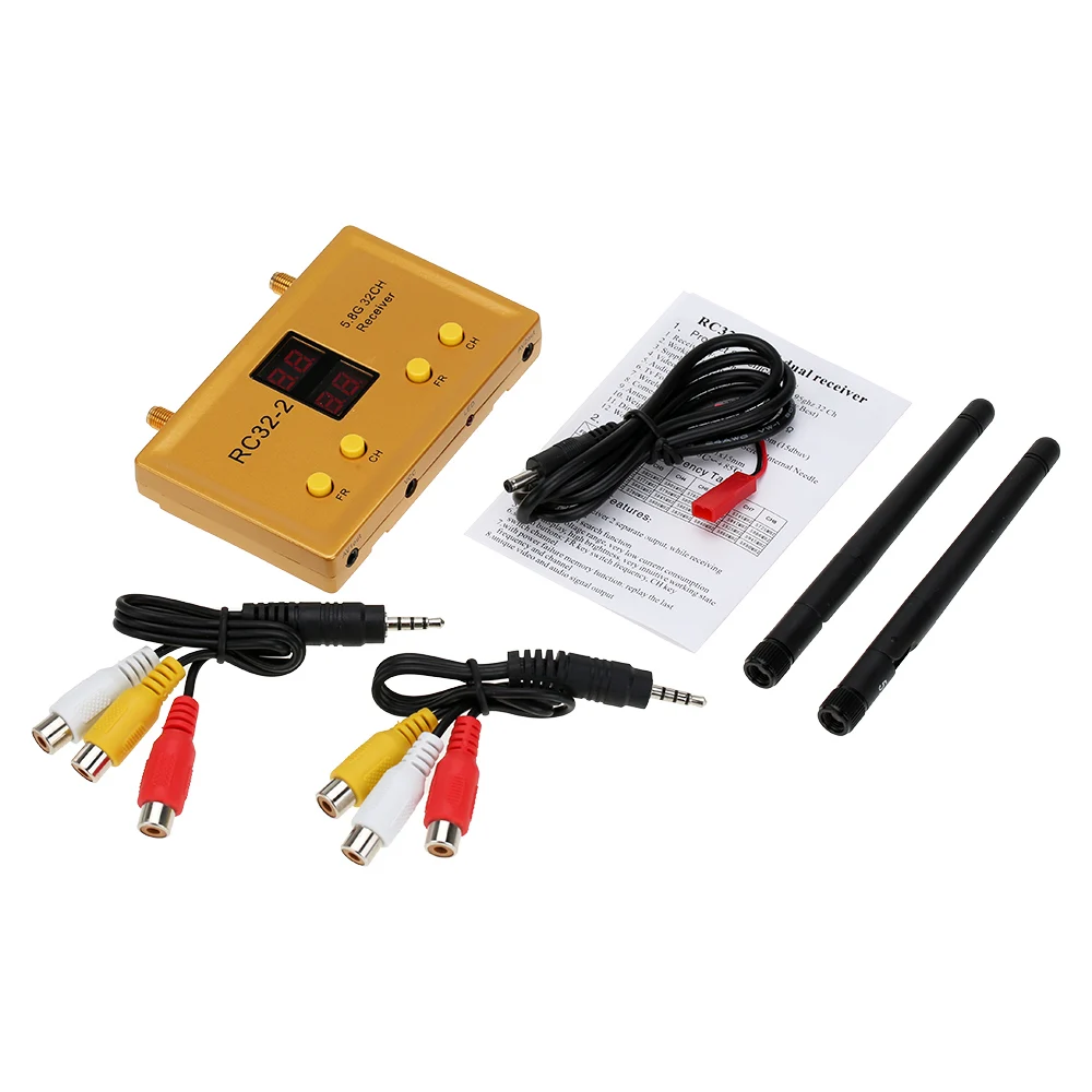 Этот приемник с 32 каналами может получать высококачественные видео и аудио сигналы. Он прост в установке и эксплуатации, и идеально подходит для FPV, беспроводного дистанционного управления самолетами, беспроводного дистанционного управления транспортным средством и так далее. Он встроен в двойной приемник 2 отдельных выхода, в то время как Получает различные сигналы.