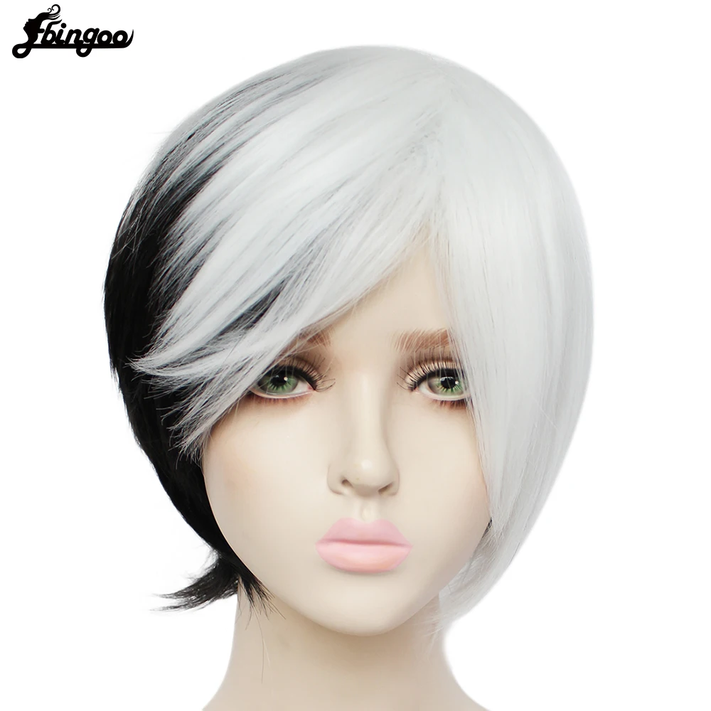 Парик для косплея Ebingoo Cruella Deville Side, наполовину белые и ...