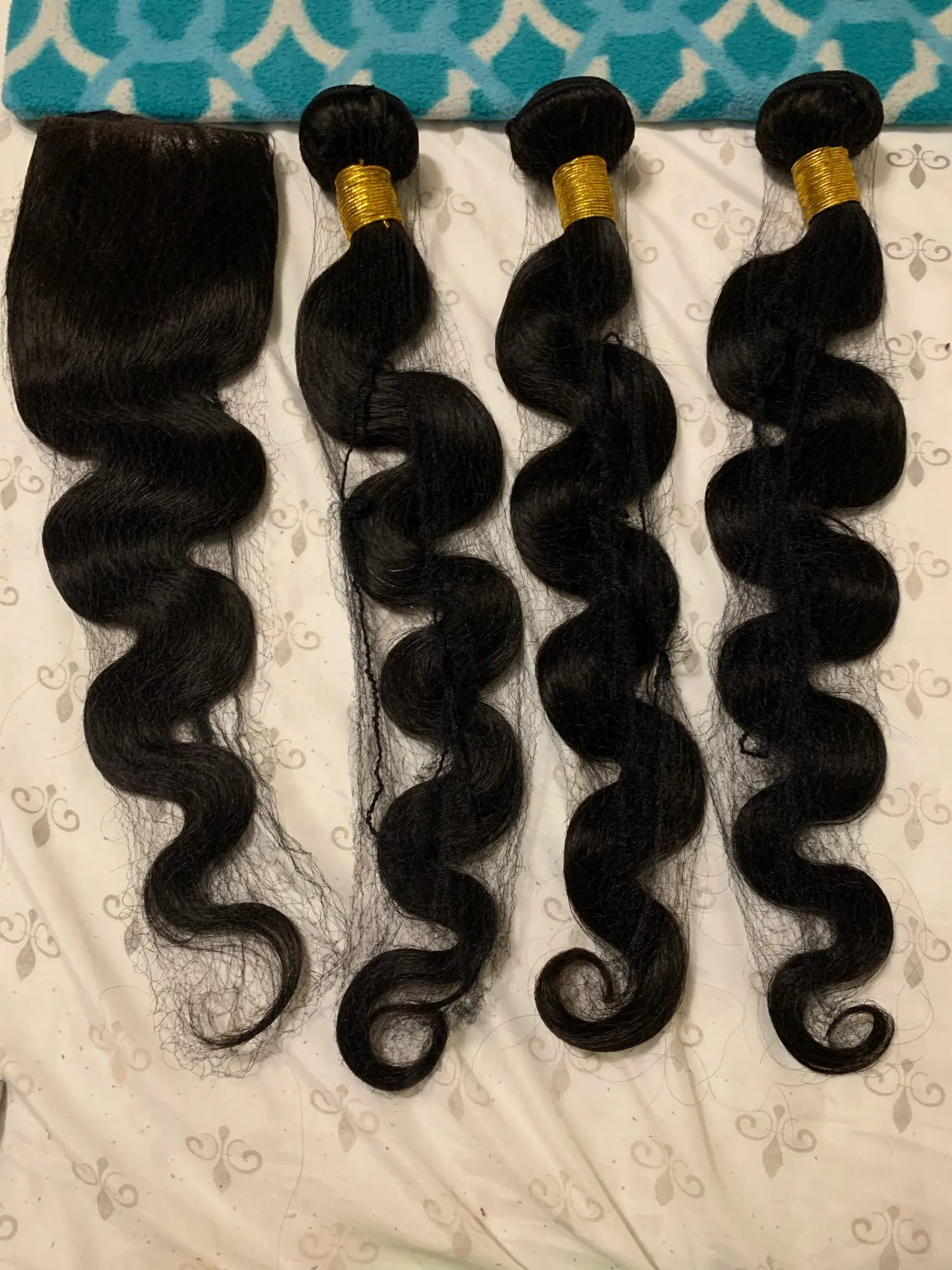 Soooo я только что получил свои прекрасные пучки и закрытые, и парней, я должен сказать, что он очень мягкий, он не имеет запаха, но немного линяет, кроме того, что он очень хороший, не могу дождаться, чтобы установить его. Я купил 24 26 26 и 20 дюймовую застежку. Я бы полностью порекомендовал этот магазин для волос всем моим великолепным леди.