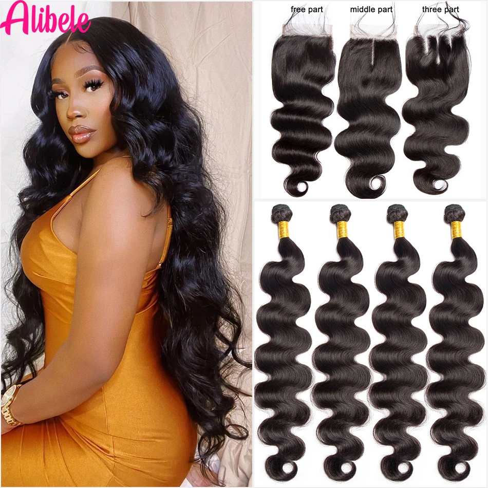 Alibele волнистые пряди с застежкой, бразильские волосы, пучок с застежкой, 30 дюймов, волнистые человеческие волосы, 3 пряди с застежкой на шнуровке