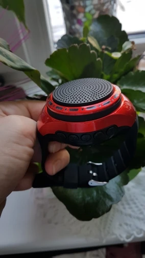Отличная мобильная колонка для занятий спортом - велосипед, бег, ходьба, ролики и пр. Помимо руки, можно повесить на руль велосипеда, при наличии крепежа. Работает по блютуф. Есть радио и слот для карты памяти