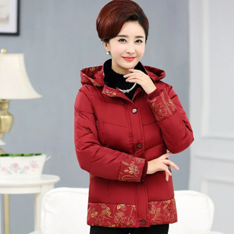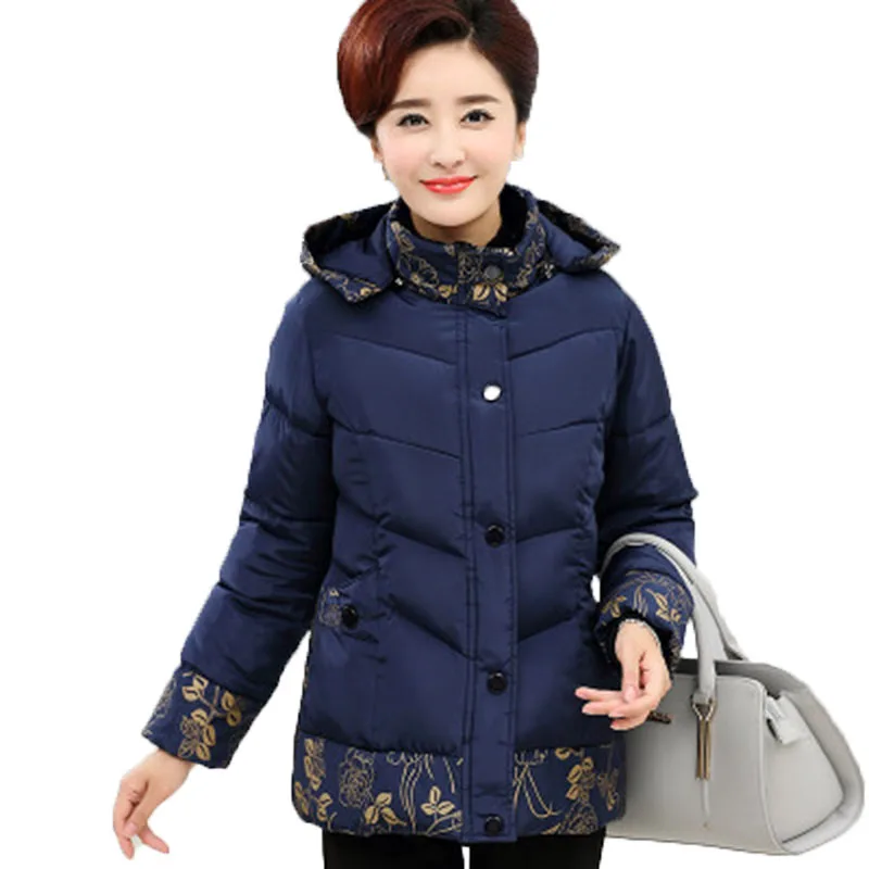 Зимняя хлопковая куртка для женщин среднего возраста, хлопковое пальто, зимняя одежда для матери, толстая стеганая куртка с принтом, размера плюс 5XL