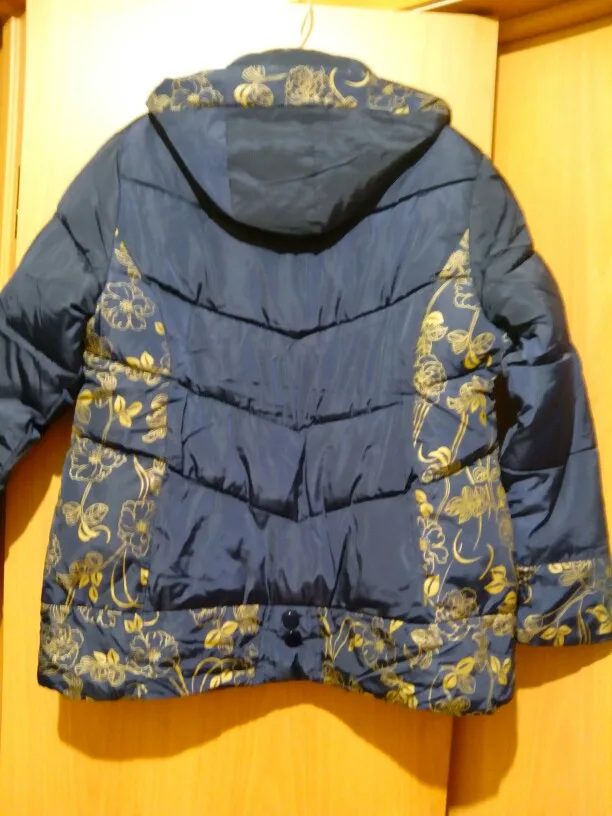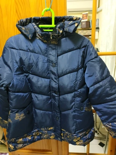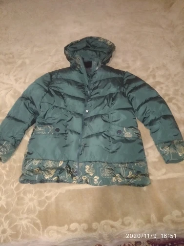 Курточка за свои 1500р. не плохая, тёплая даже надеваю на тонкую водолазку х/б за окном -10° и норм.! была бы она чуточку подлинее вообще бы было супер! и капюшон побольше бы....а этот прям в облипку по голове))) Пошив вроде норм.все строчки ровные и ниточек особо нет. Сам верх куртки болоний плотный хороший, клёпки хлипковаты, молния норм. Изюменку этой куртке придает отделка с золотистыми рисунками. А так обычная дешевая куртяшка.! Вот только с размером решила перестраховаться и взяла на свой русский 48-50 4XL, побоялась что XXXL будет узка, мала???? Но думаю была бы норм.!? А 4XL мне немного широка, но зато не стесняет движения и можно поддеть свиторок. Вообщем за 1500т.р. сойдёт на работу ходить.... Заказала вторую такую куртку коллеге по работе))))
