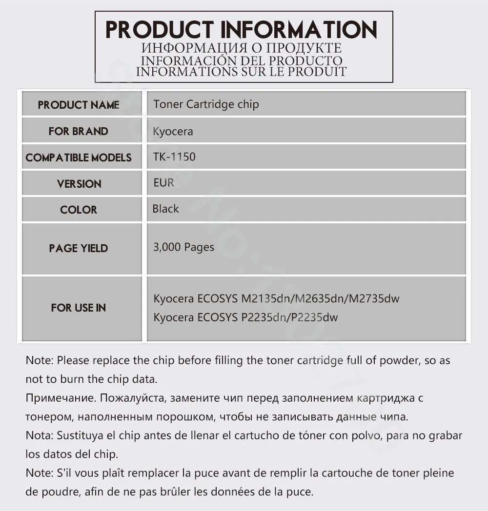 TK1150 TK-1150 TK 1150 чип картриджа с тонером для Kyocera ECOSYS M2135dn M2635dn M2735dw P2235dn P2235dw M2135 P2235 сброс порошка