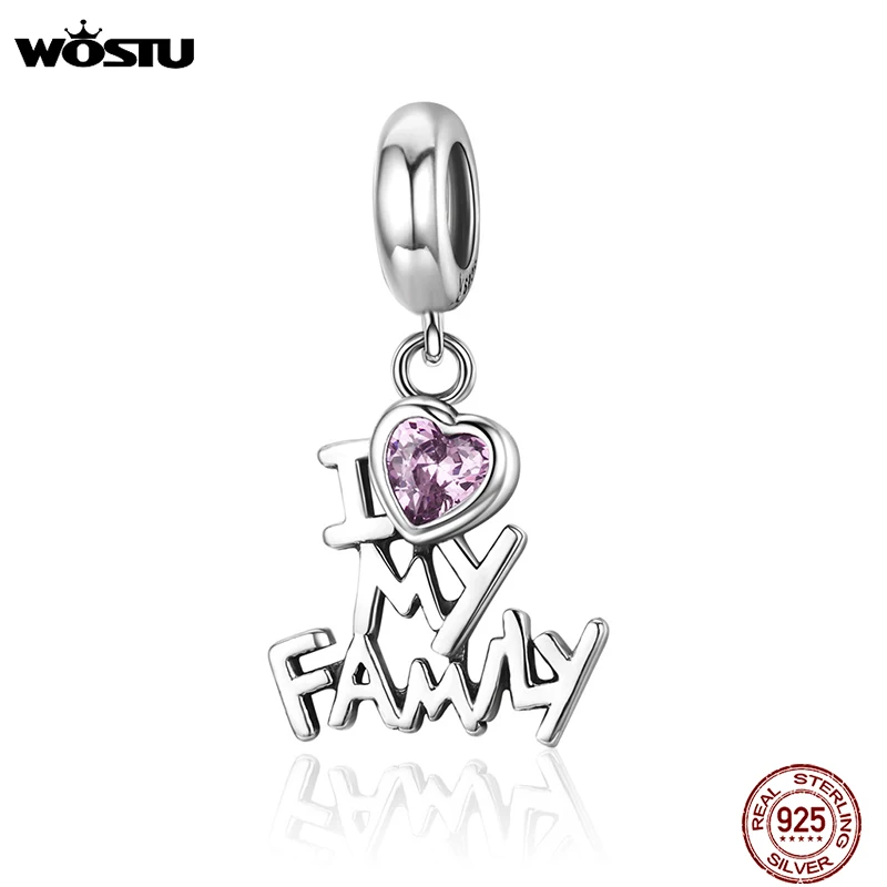 Серьги-подвески WOSTU из серебра 925 пробы с бусинами I Love My Family, оригинальный браслет с подвеской, CQC251