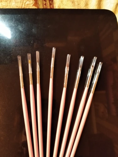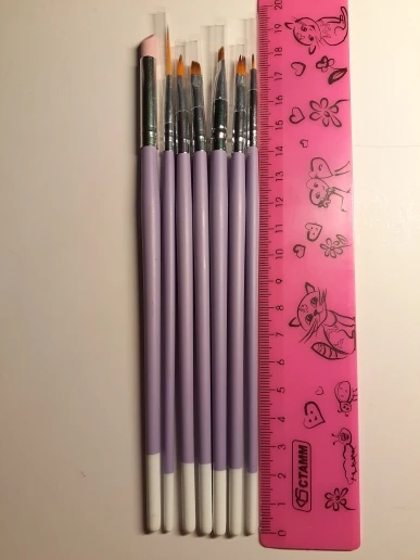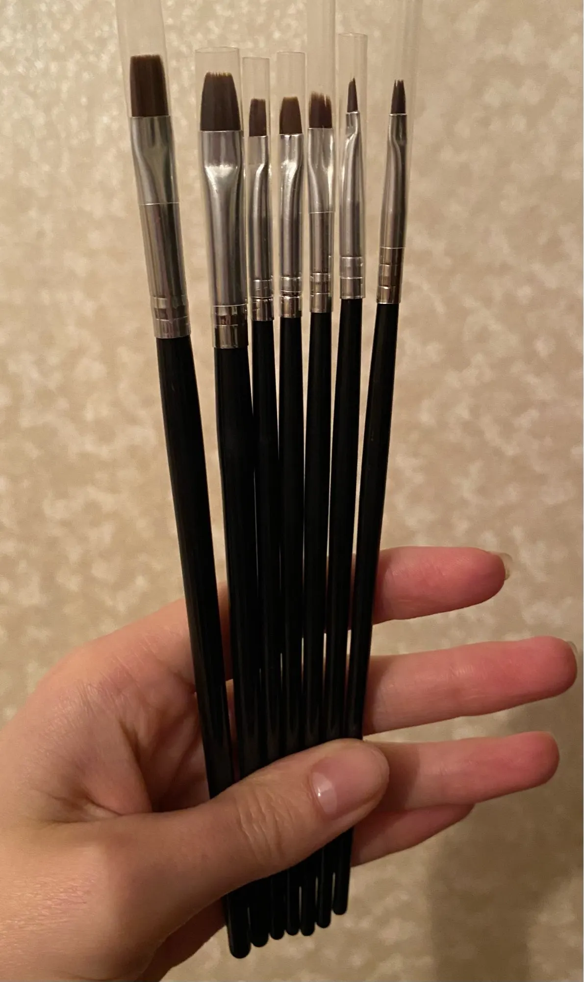 Кисточки пришли быстро за 2 недели (доставлял AliExpress standart shiping) Кисточки оказались маленькими, прям очень маленькими. Самая большая 0,3см. Даже незнаю как буду использовать,но к продавцу я претензий не имею, так как выбрала сама этот сет, у продавца есть и крупнее кистоски. Качество хорошее, каждая кисточка в индивидуальном колпаке, ворсинки не торчат, приклеены хорошо