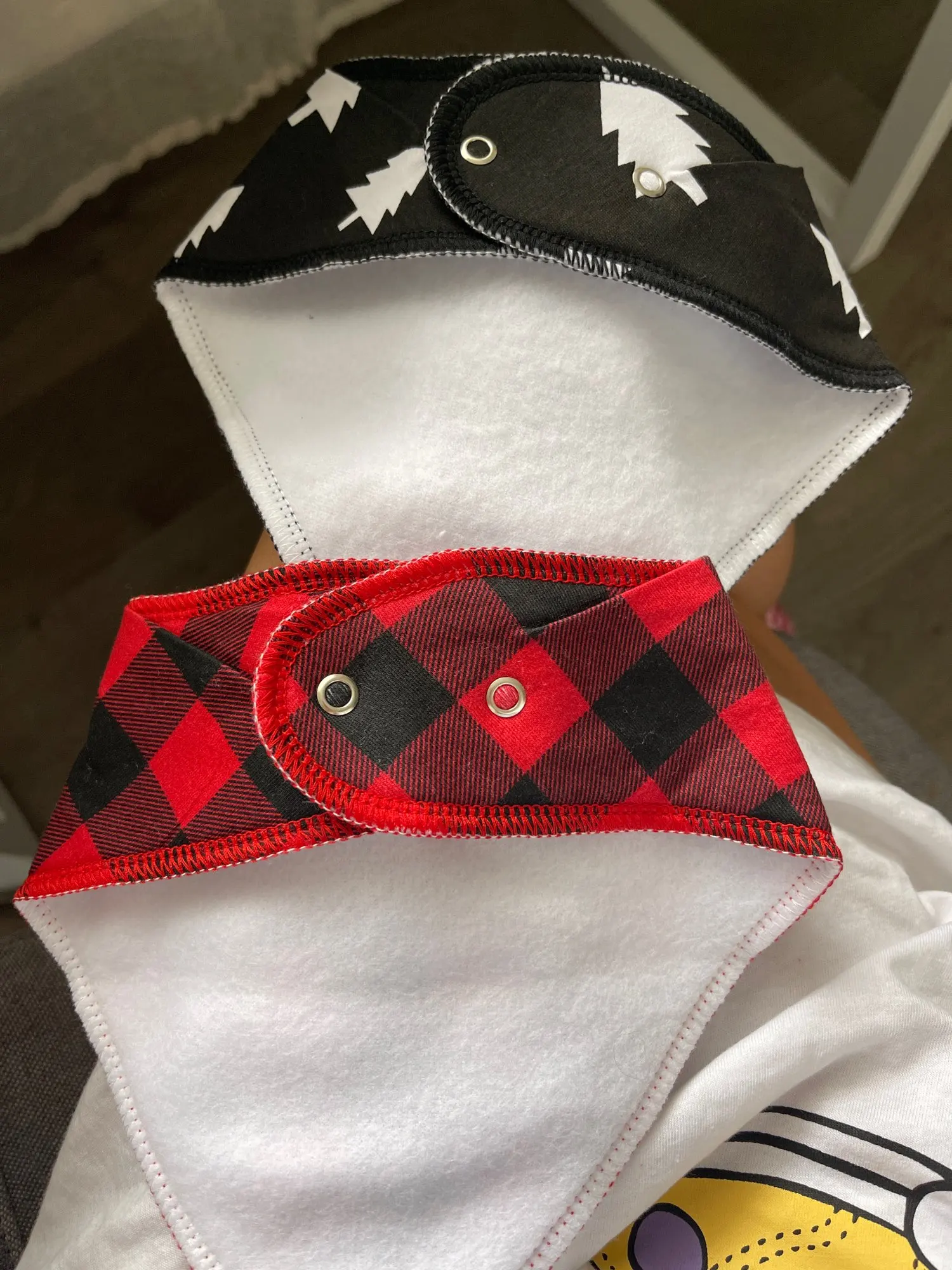 Очень хорошие слюнявчики! Впитывают влагу хорошо, сохнут после стирки быстро. Но очень толстый подклад, в них малышу жарко