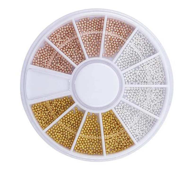 Миниатюрные бусины в форме икры, золотистыесеребристые, 3 цвета, 1 колесо, гвоздики для нейл-арта, 3D дизайн ногтей, мини-круглые жемчужины, украшения для маникюра