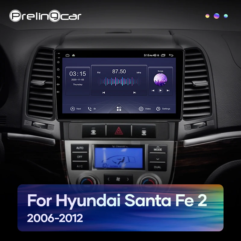 Автомобильная Мультимедийная система Prelingcar, автомагнитола под управлением Android 10,0, с видеоплеером, GPS-Навигатором, без DVD, с восьмиядерным процессором, для Hyundai Santa Fe 2, 2006-2012, типоразмер 2 Din