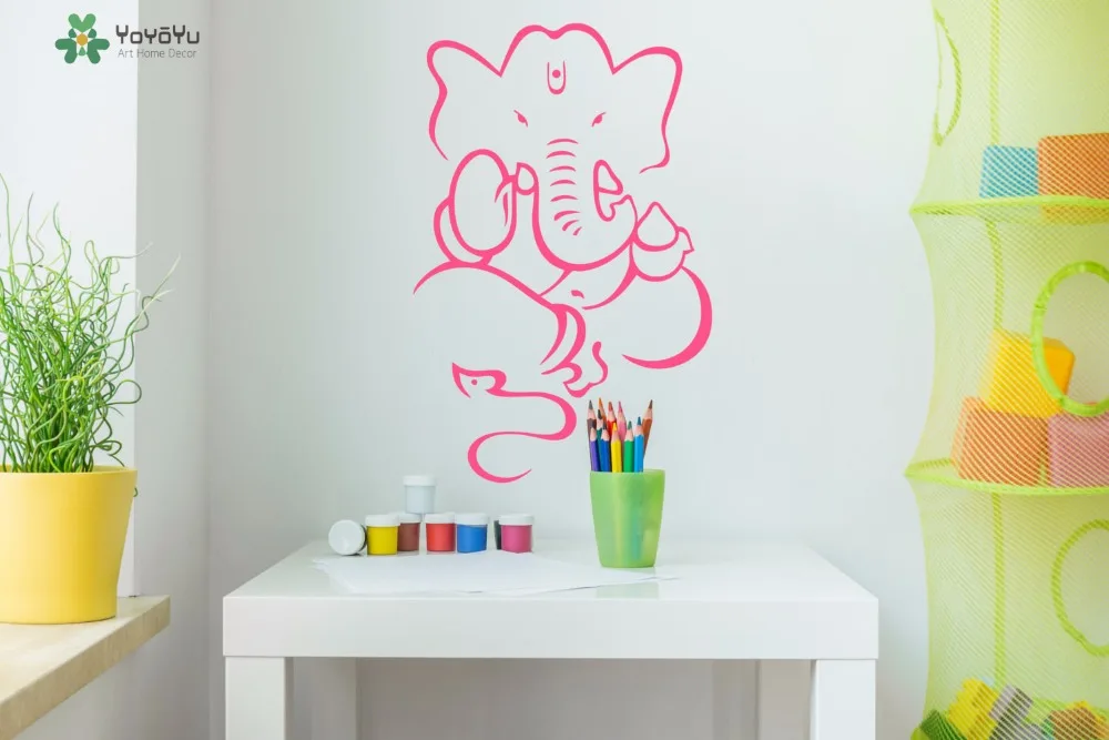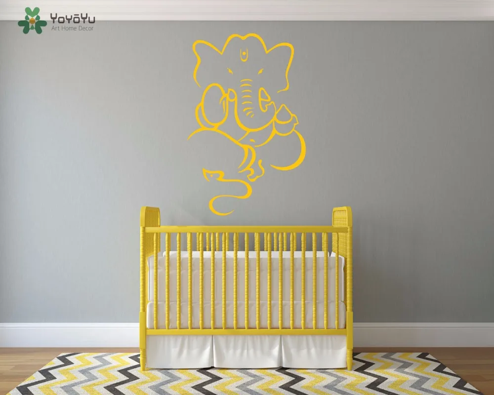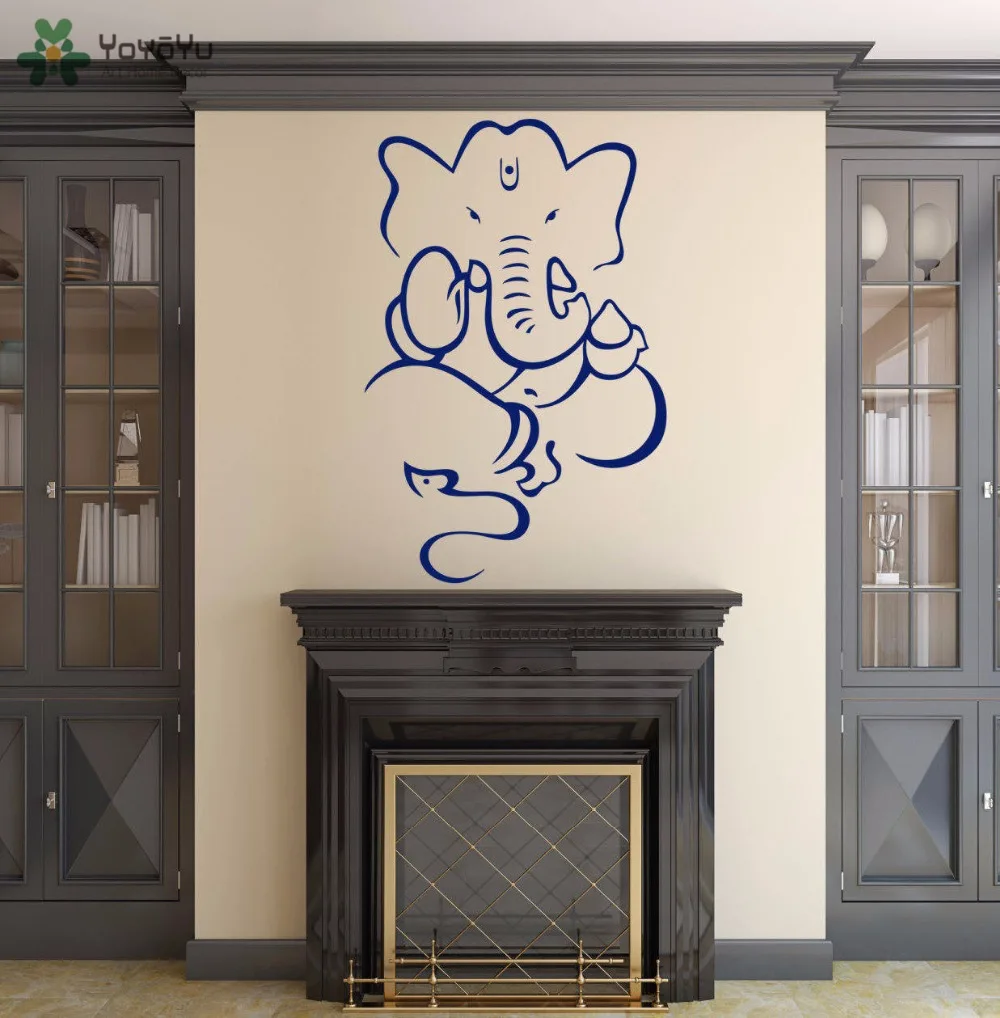 Настенная Наклейка yoyoyoyu, индуийский Бог, Ганеш, настенная наклейка, Йога, студия, искусство, съемная индийская религия, слон, домашний декор, съемный, DIYSY538