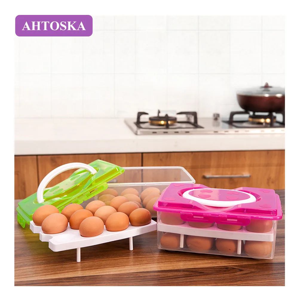 AHTOSKA Двойной Слои Ящик Для Хранения Яйц С24 Сетками Контейнер Портативный Держатель Коробки И Ящики Для Хранения