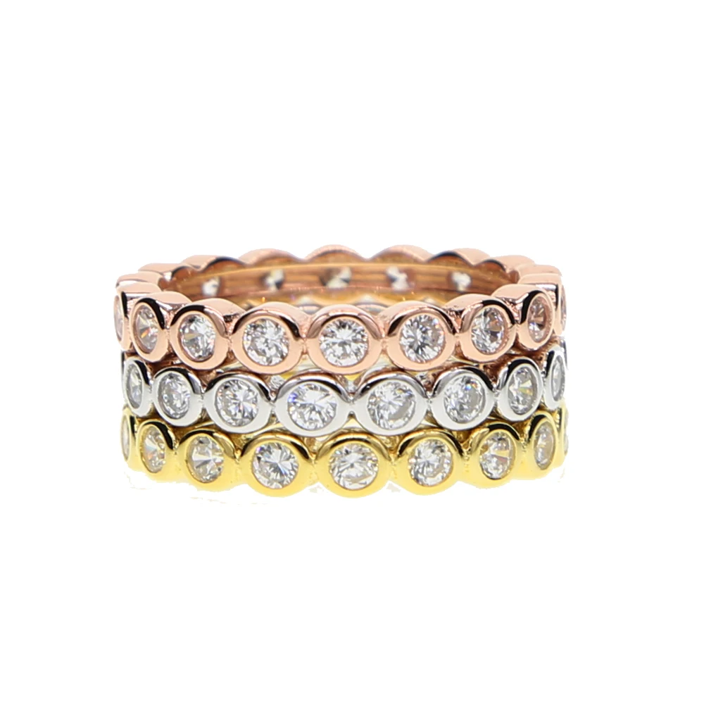 2017 ювелирные изделия штабелируемые обручальные cz Свадебные обручальные вечность браслет 925 Серебряное трехцветное стек кольцо набор