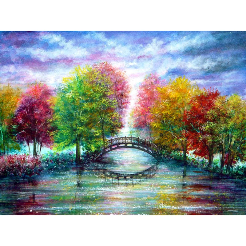 Картина Zhui Star 5D "сделай сам", квадратная Алмазная вышивка крестиком, четыре сезона, дерево и мост, вышивка Стразы, мозаичный Декор