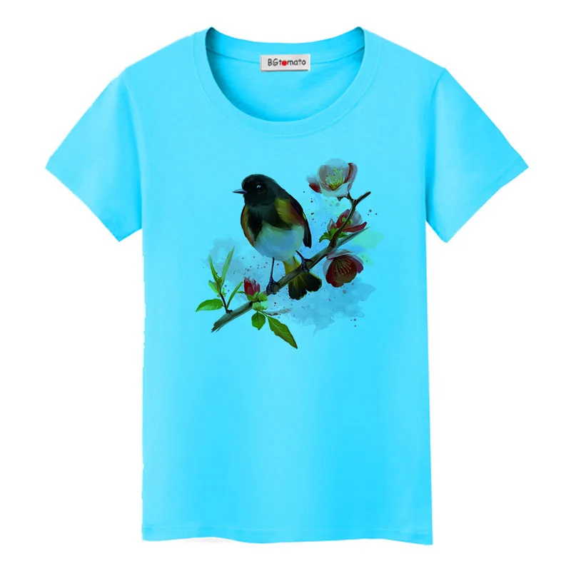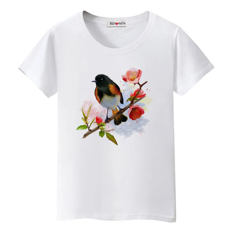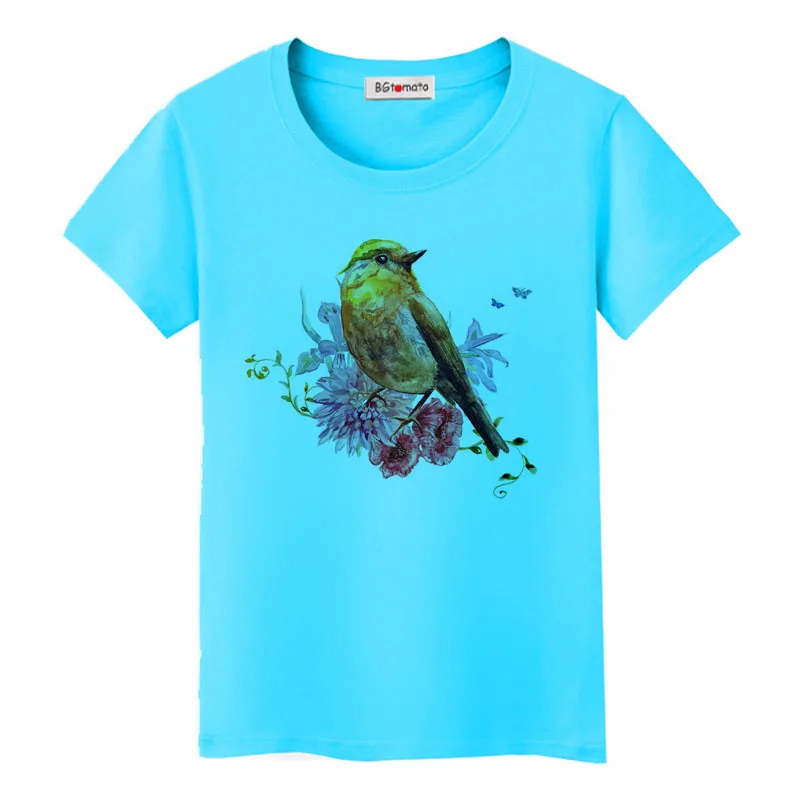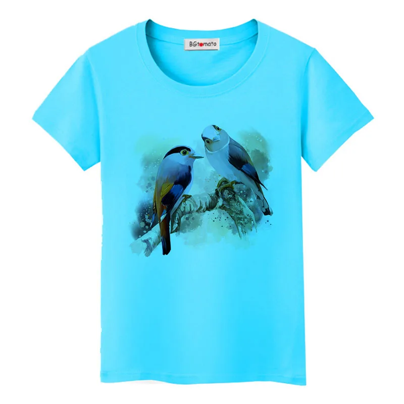 Футболка 1BGtomato, женская футболка с разноцветными птицами и радугой, красивая рабочая одежда, лидер продаж, удобная женская футболка